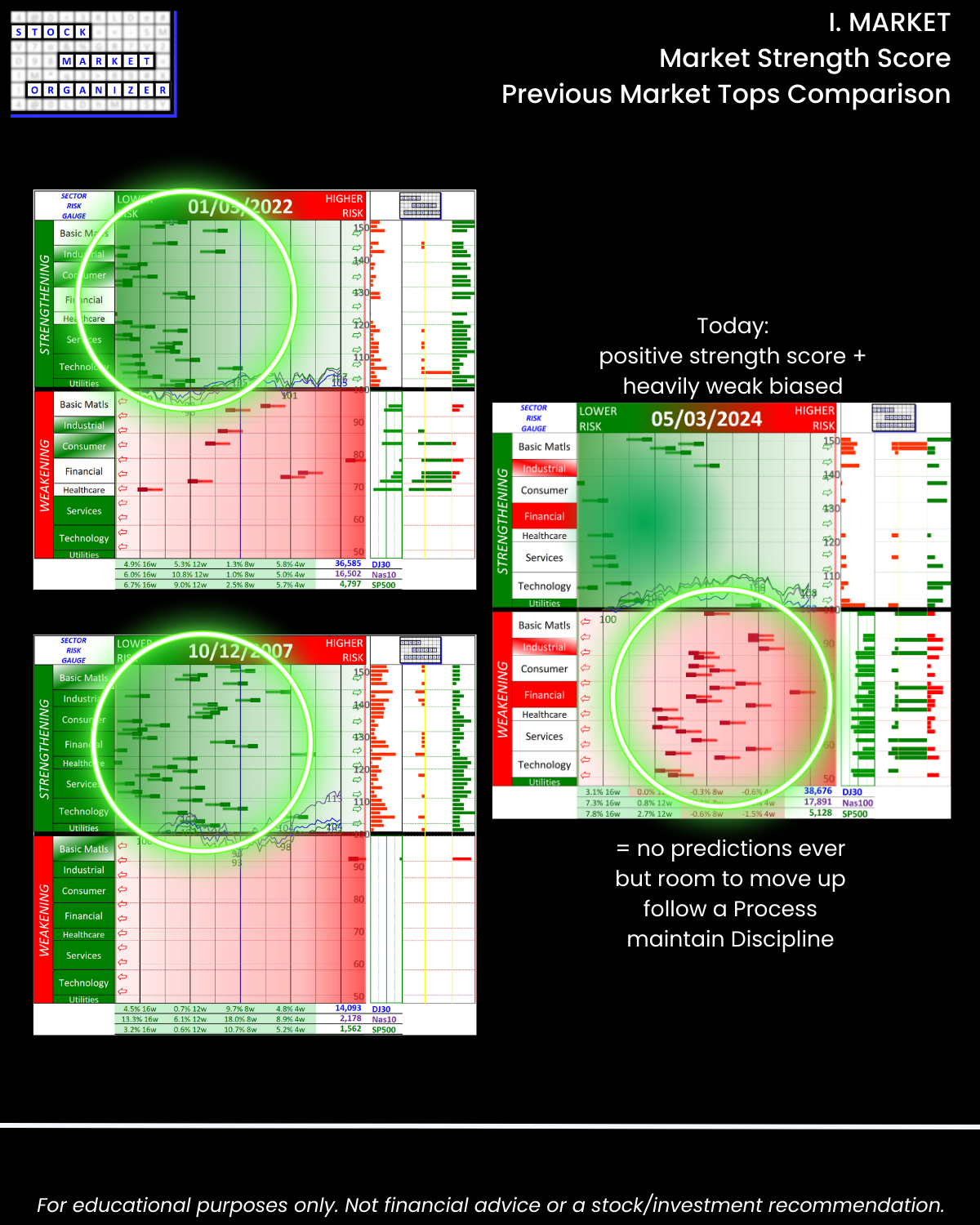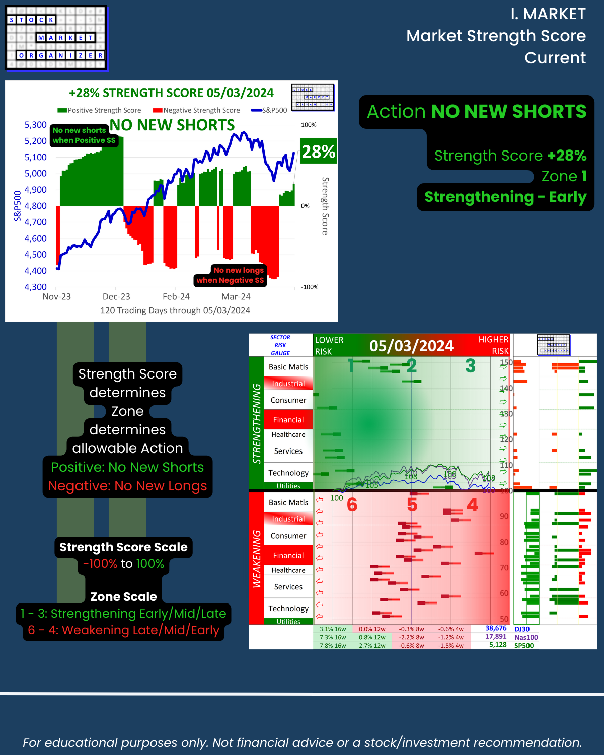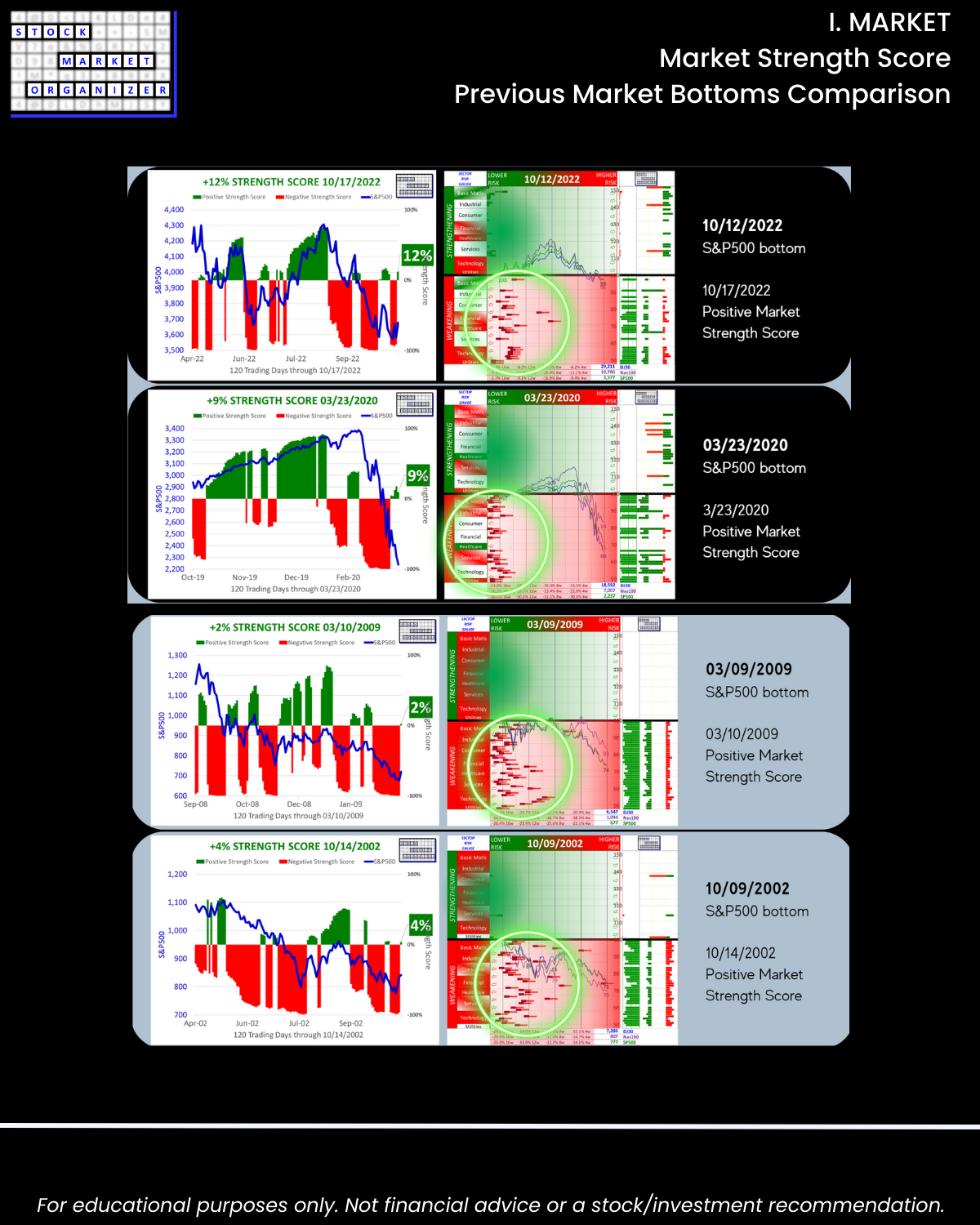 What I didn't yet own was a logical method for making sense of the market. Hence the genesis of the Stock Market Organizer system - a focus on strength in the market, a critical piece of the puzzle for anyone seeking to profit in this arena. The macro concept that "Market Conditions Matter" is incorporated into this system as noted below.