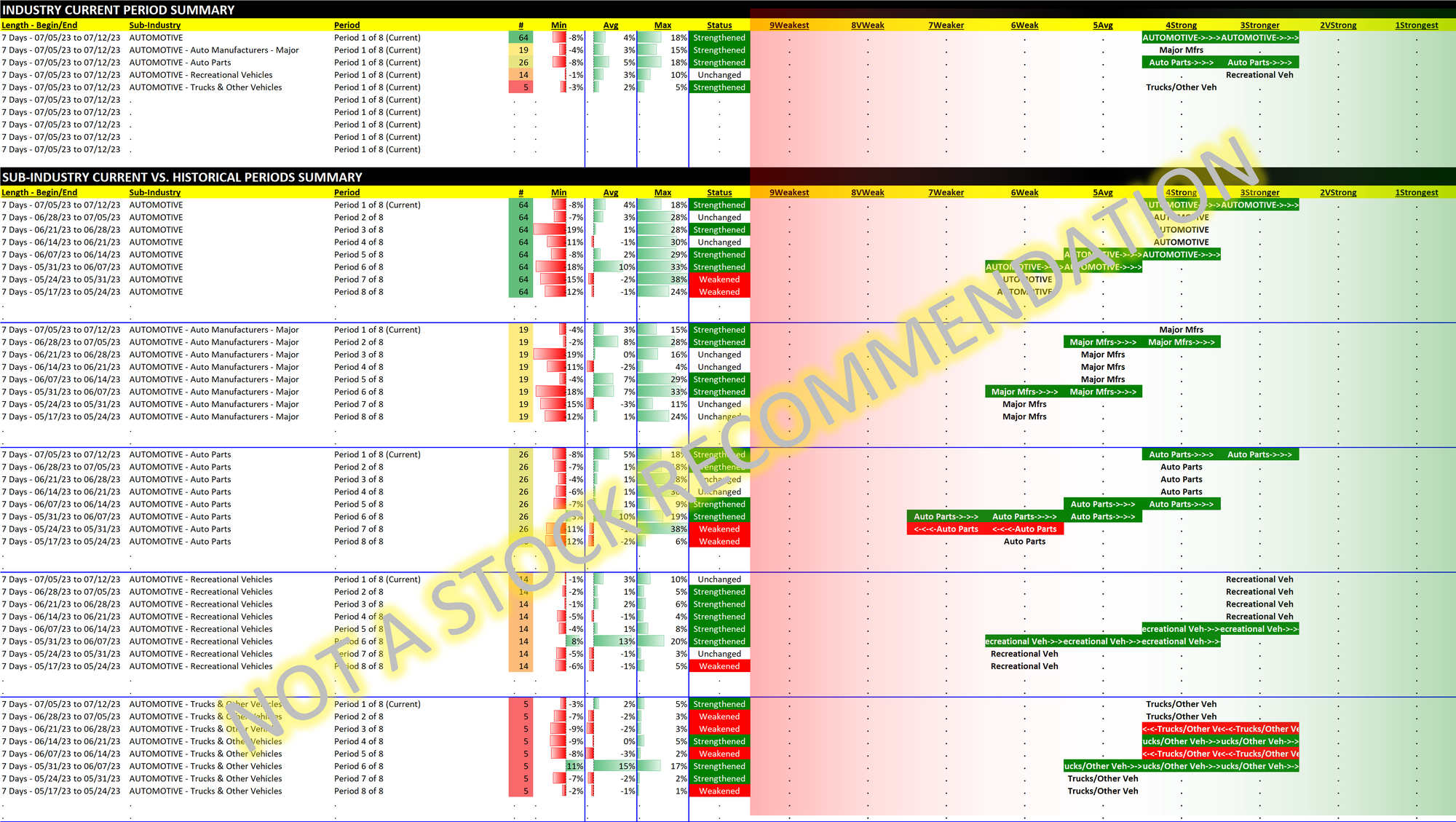 Two of the four sub-industries are Strong, the other two are Stronger. General movement over the past eight weeks has been strengthening.