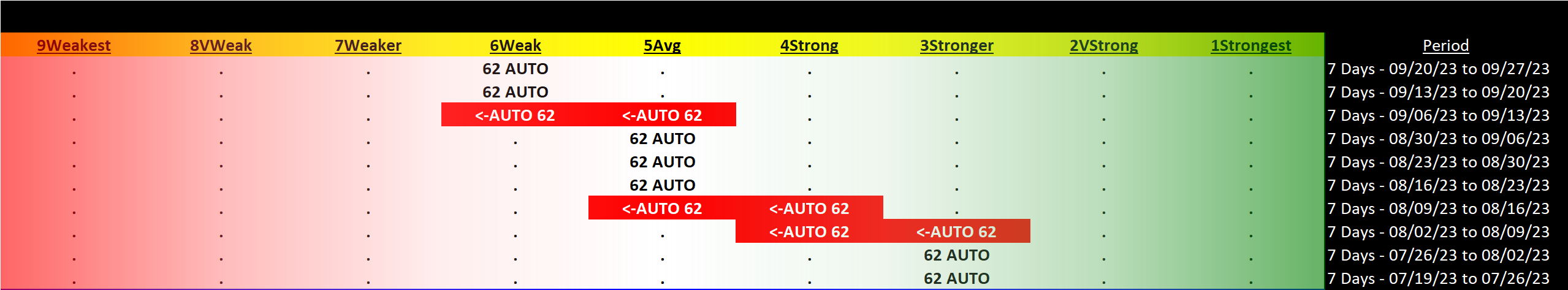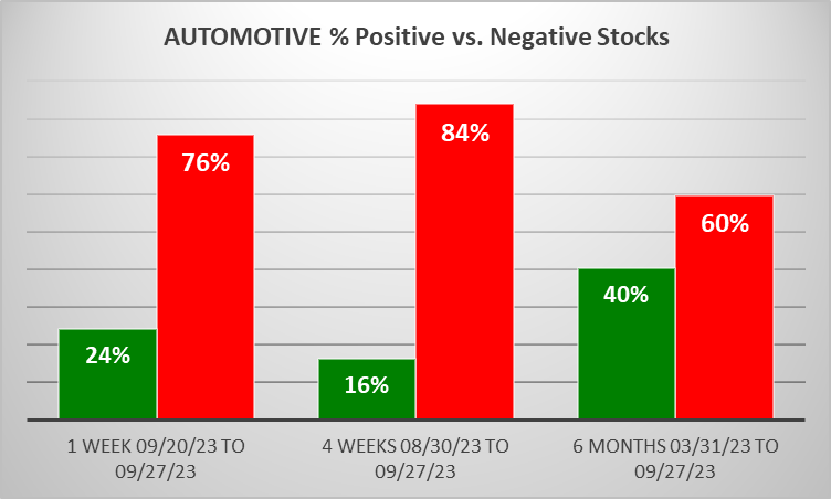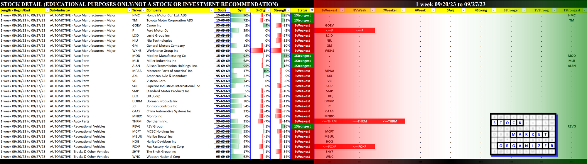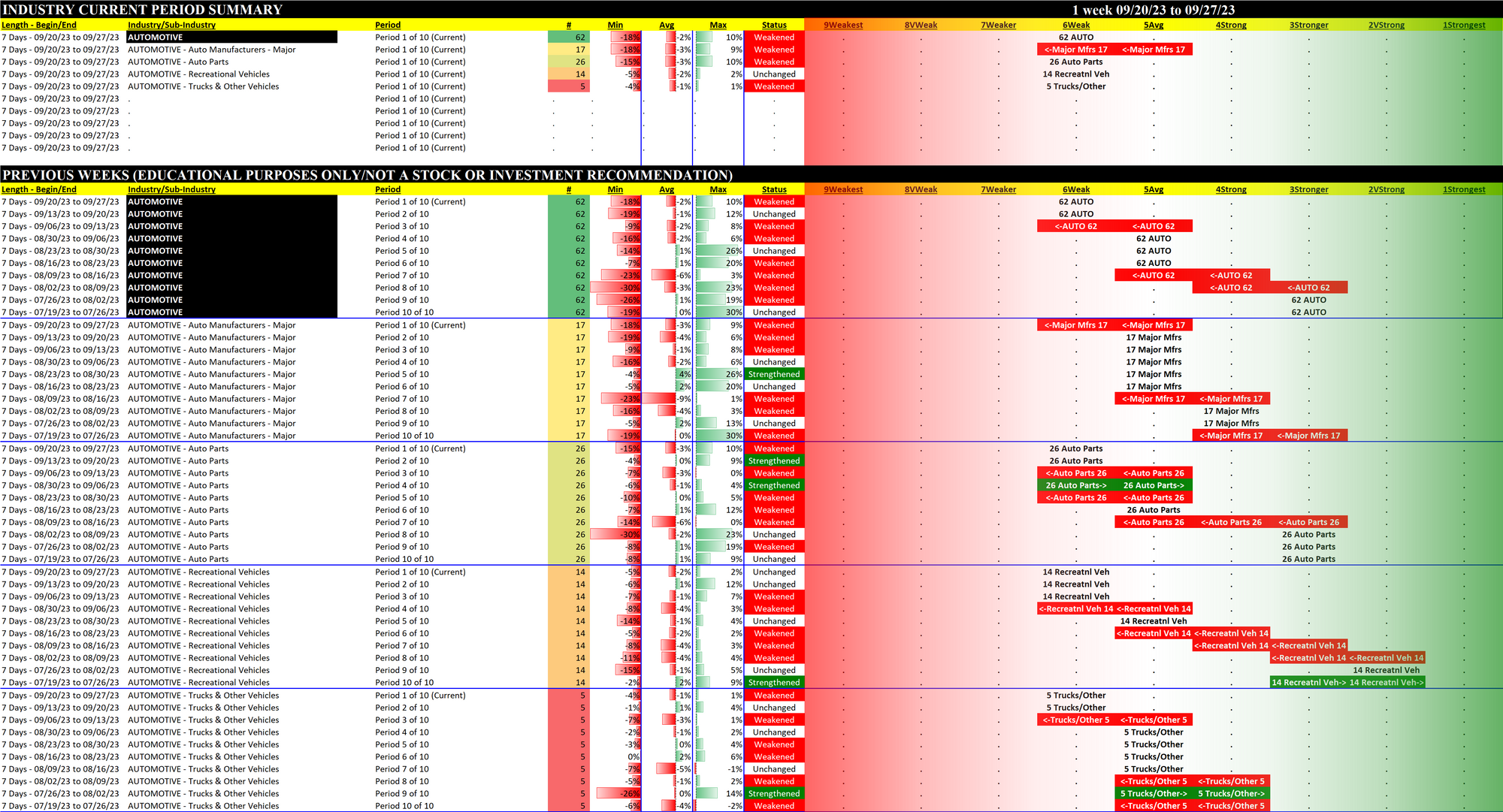 Automotive 2023-09-27: Unchanged at WEAK strength rating (6th strongest of 9 levels), previous move was DOWN