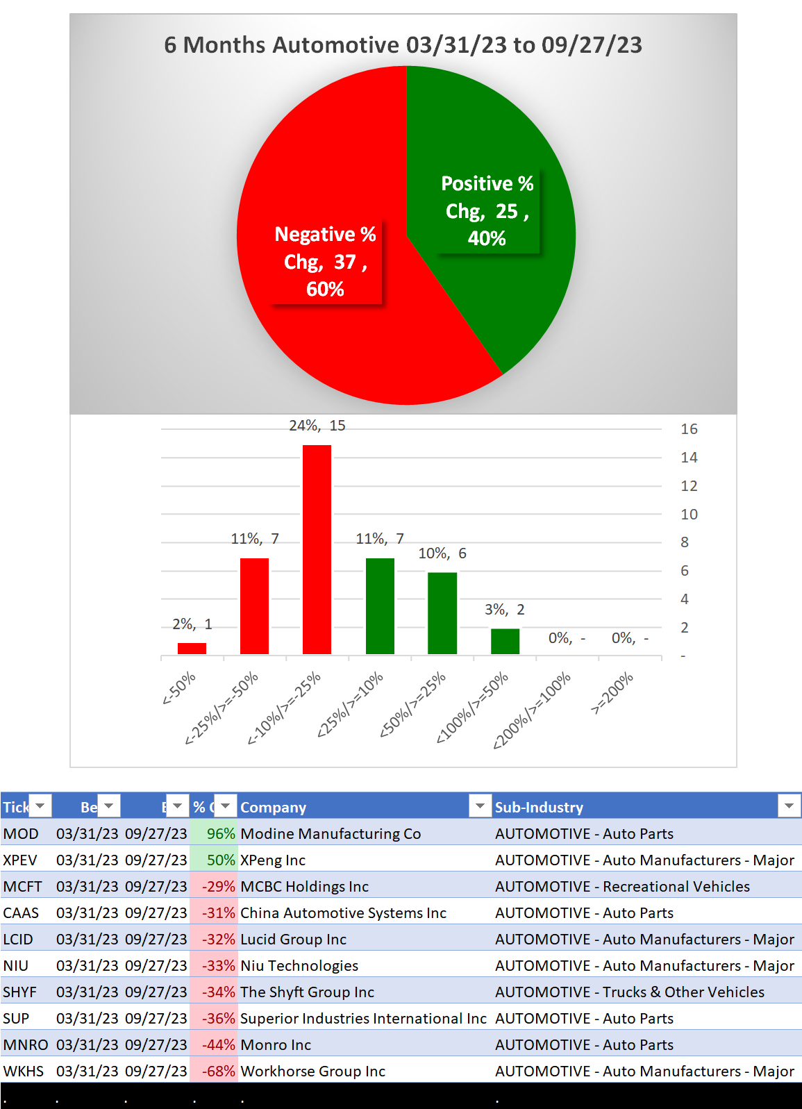 TSLA/Tesla Inc, TM/Toyota Motor Corporation ADS, RACE/Ferrari NV, STLA/Stellantis N.V., HMC/Honda Motor Co. Ltd. ADS, F/Ford Motor Co, GM/General Motors Company, PCAR/Paccar Inc, LI/Li Auto Inc, JCI/Johnson Controls Inc