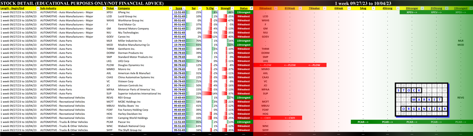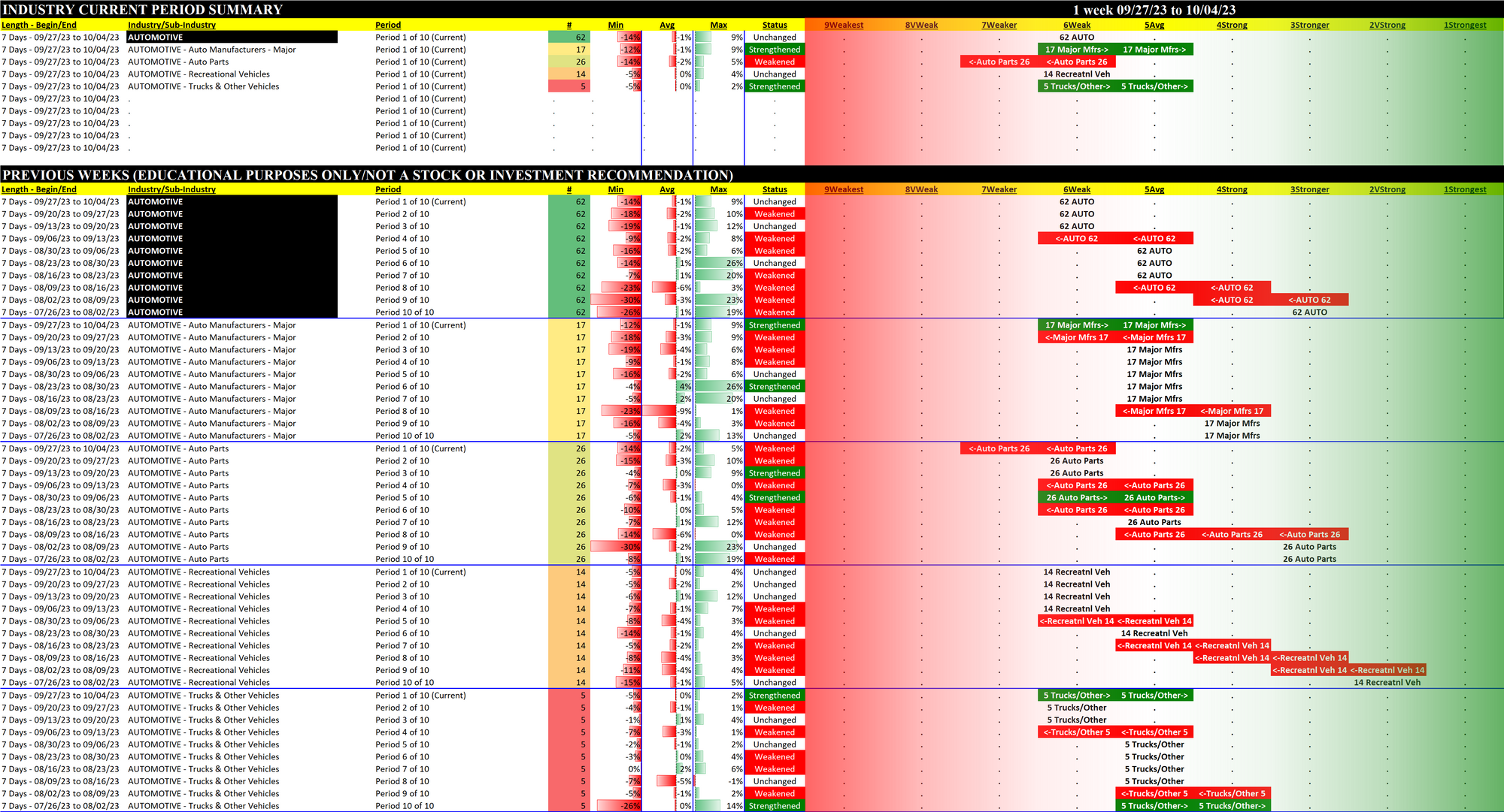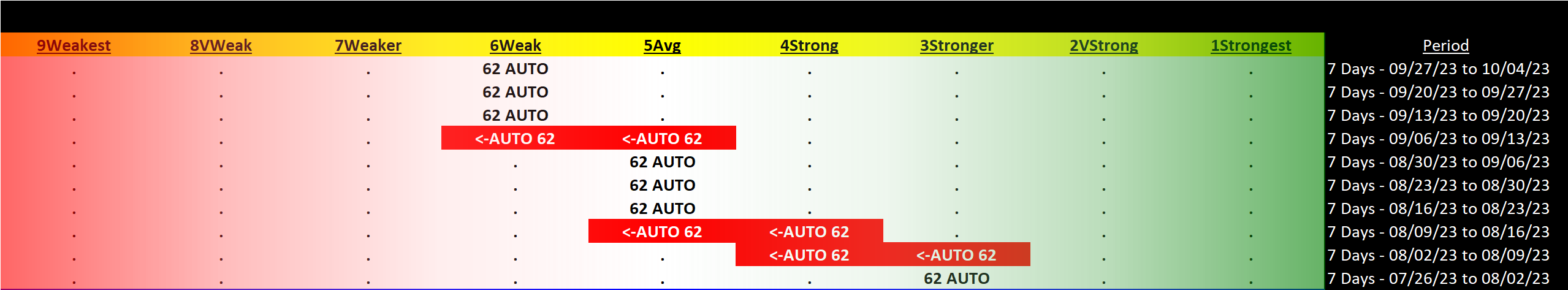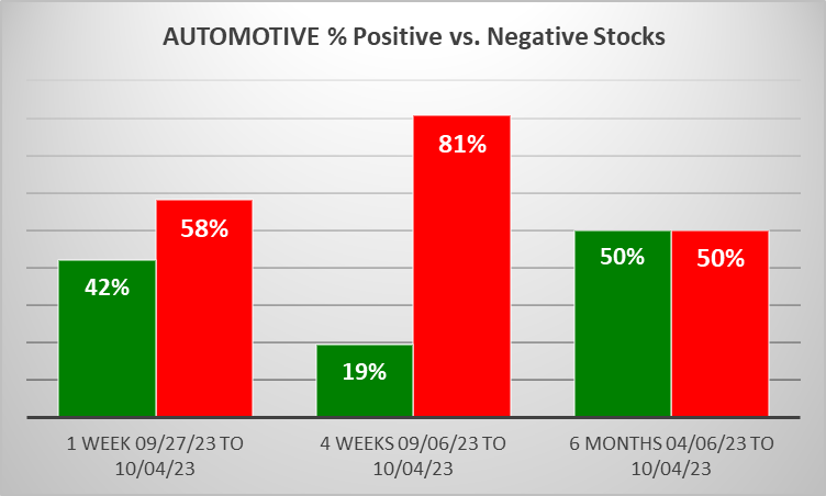 Automotive 2023-10-04: Unchanged at WEAK strength rating (6th strongest of 9 levels), previous move was DOWN
