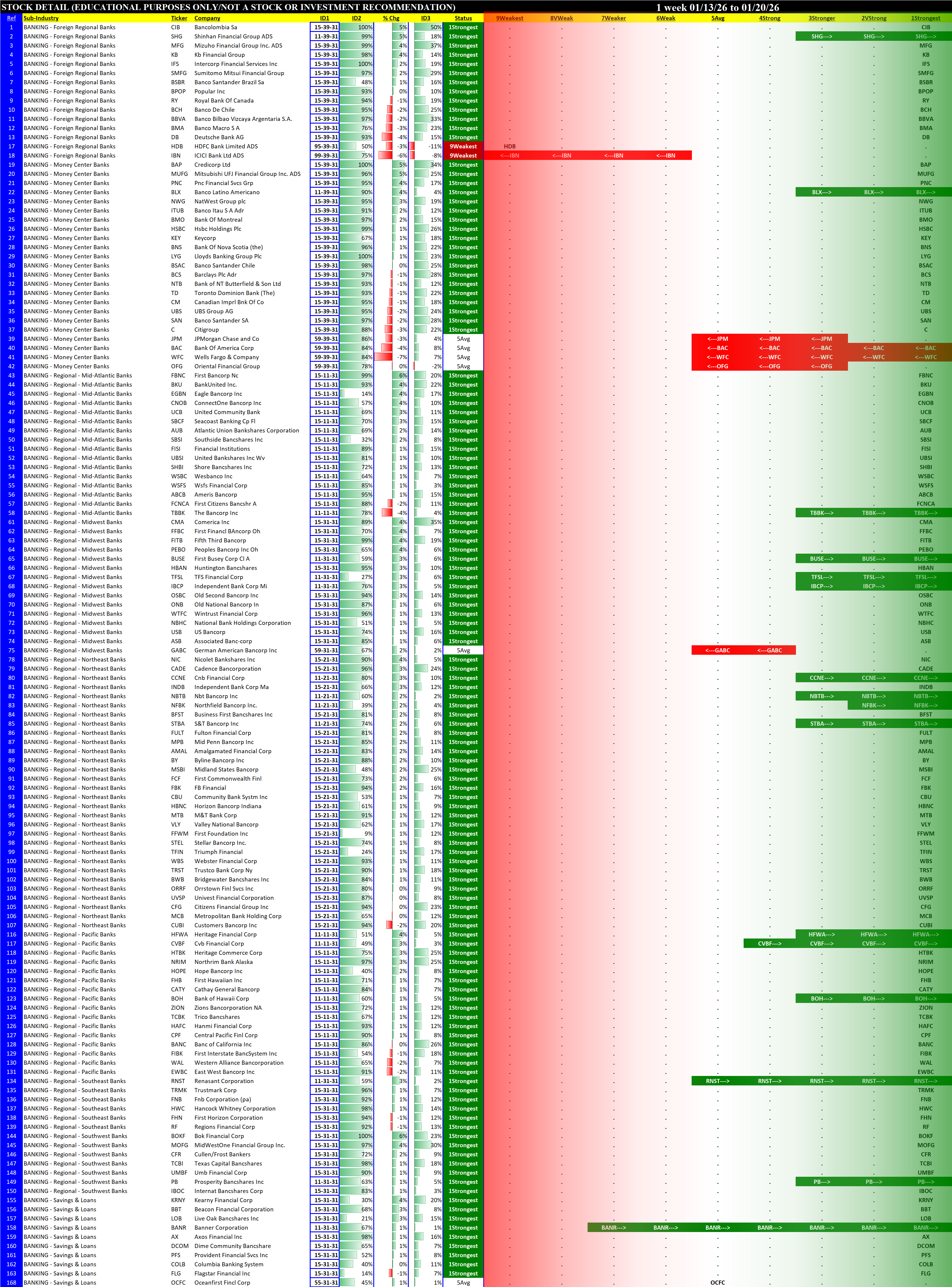 Banking Industry Tue 2026-01-20: Strengthened/0 (3Stronger)