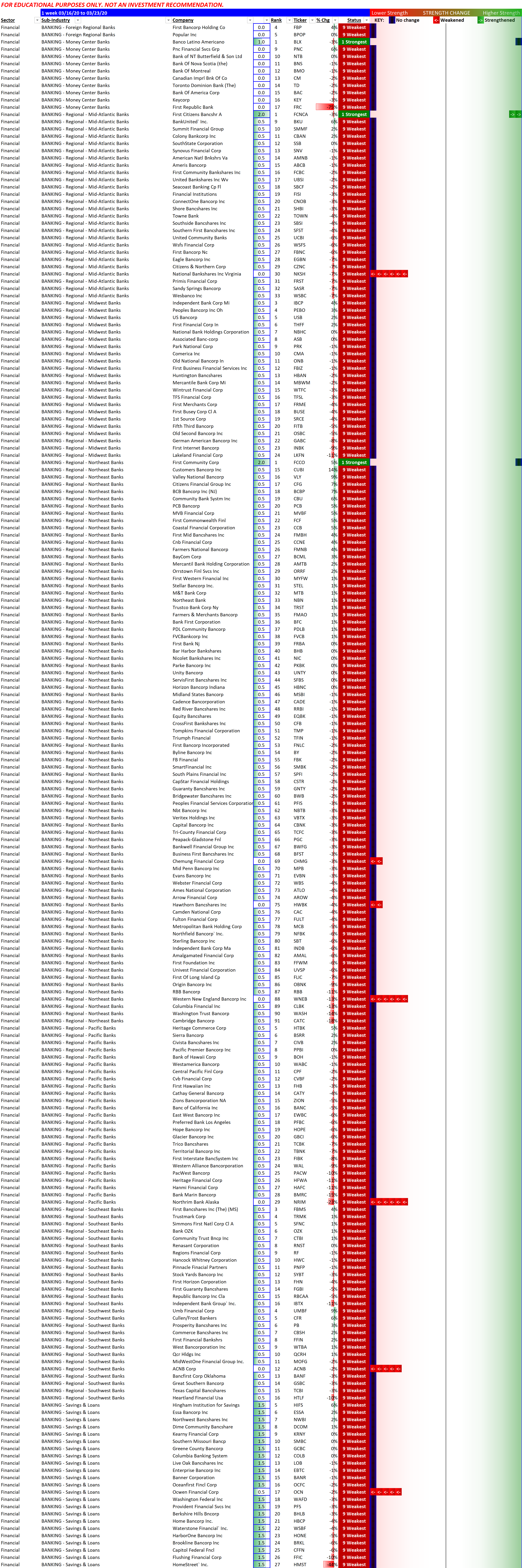 Below is a stock-by-stock look at only the Strongest and Weakest Banking stocks. There are only three with the Strongest Rating: Banco Latino American/BLX, First Citizens Bankshares/FCNCA, and First Community Corp./FCCO.