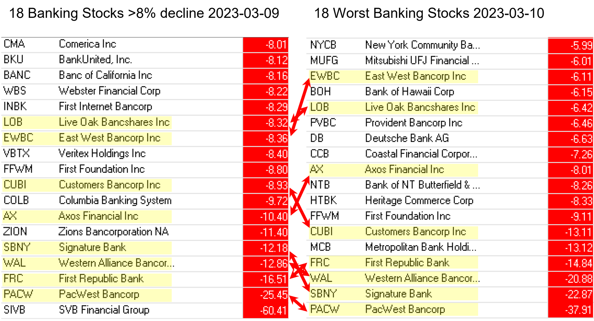 Here are the worst performing 18 banking stocks yesterday and today (excludes the smallest caps):
