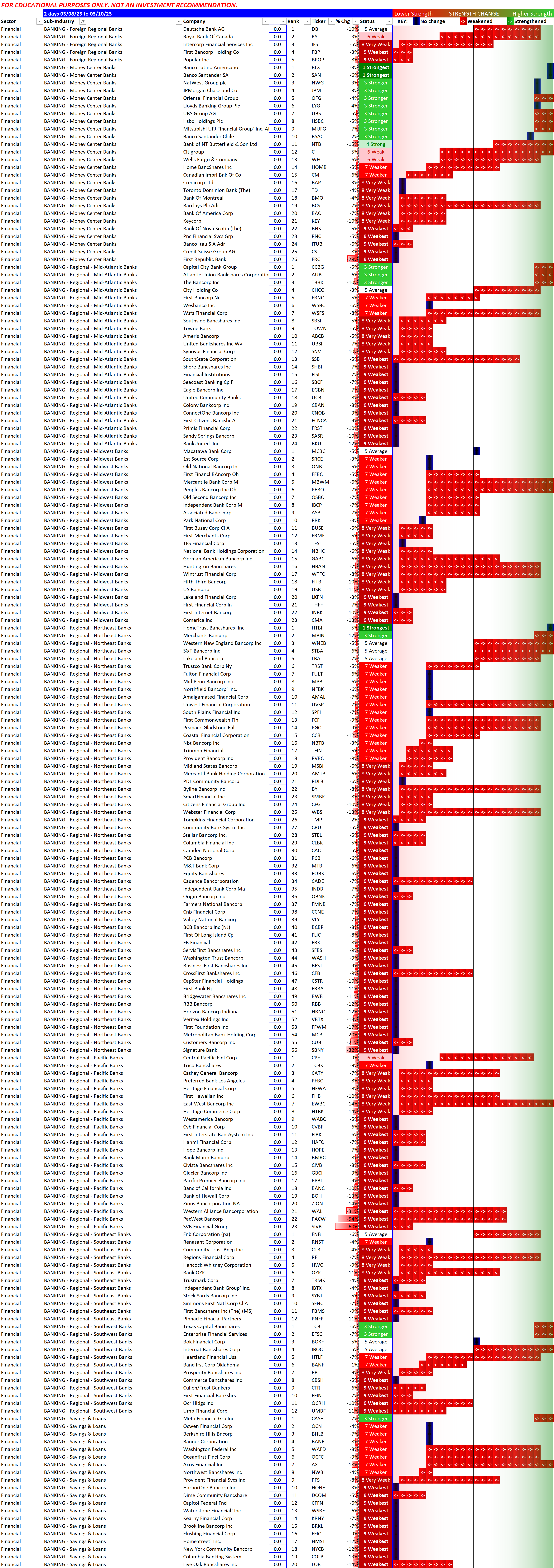 Of 201 banking stocks followed, one was positive. (Banco Santander Chile/BSAC, a Money Center bank.)