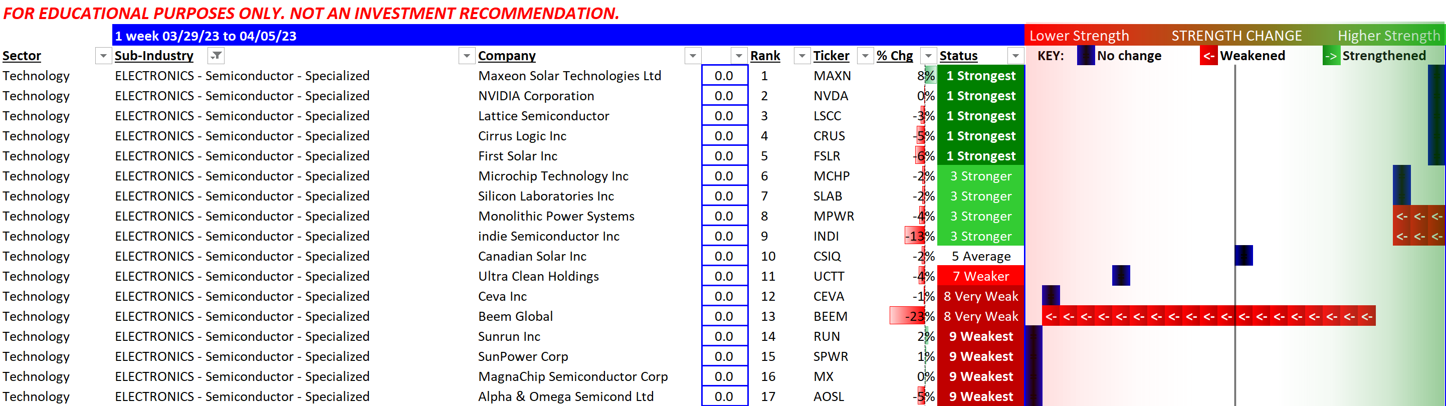 NVIDIA Corporation/NVDA retains its "Strongest" rating along with four others but there is a material cohort of Very Weak/Weakest stocks in this sub-industry.