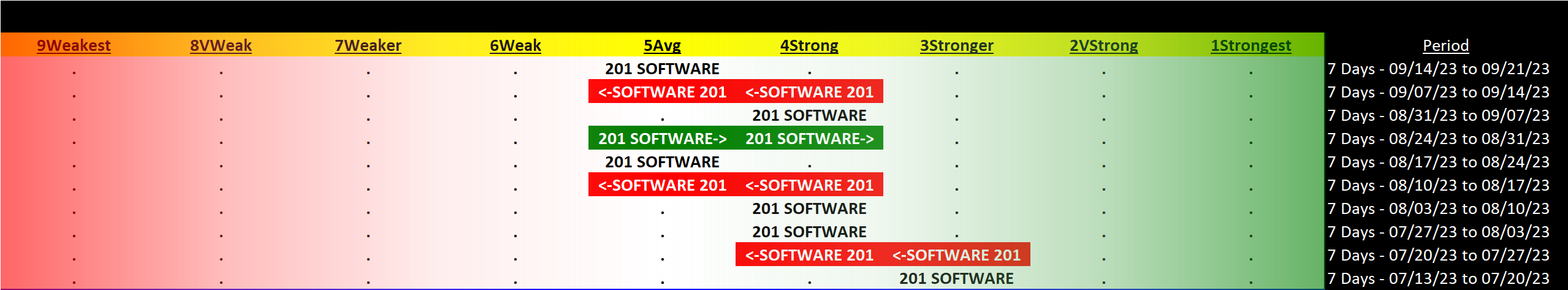 Past 10 Weeks Strengthening/Weakening week-by-week, per the following chart:
