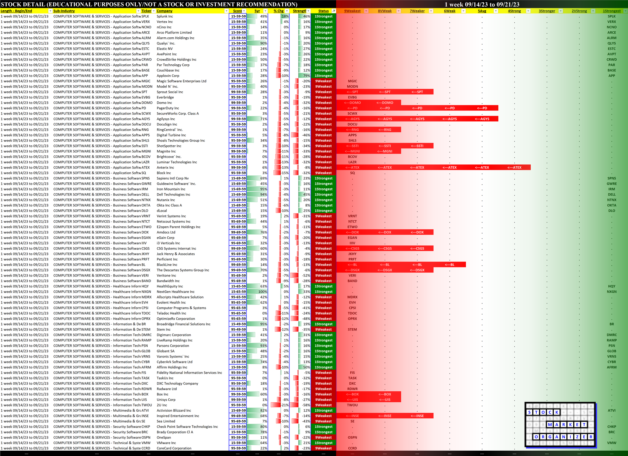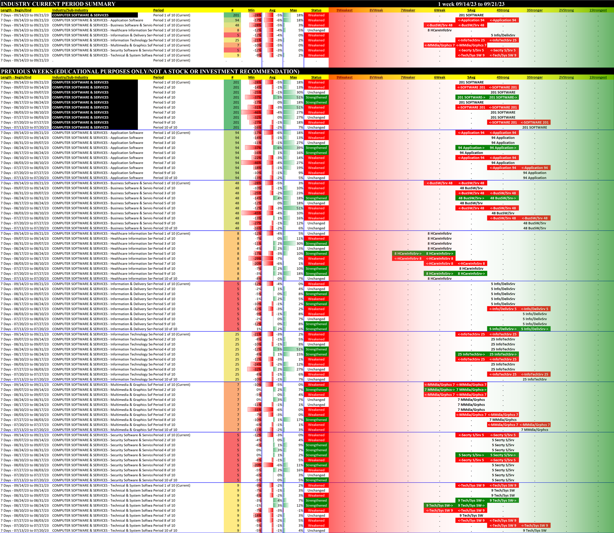 Computer Software & Services 2023-09-21: Unchanged at AVERAGE strength rating (5th strongest of 9 levels), previous move was DOWN