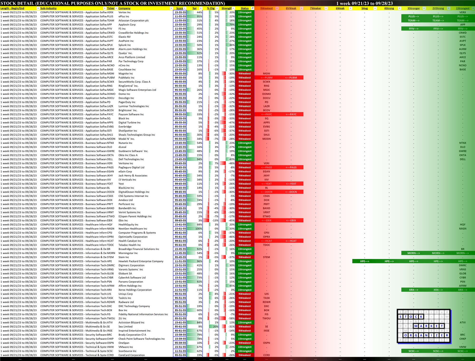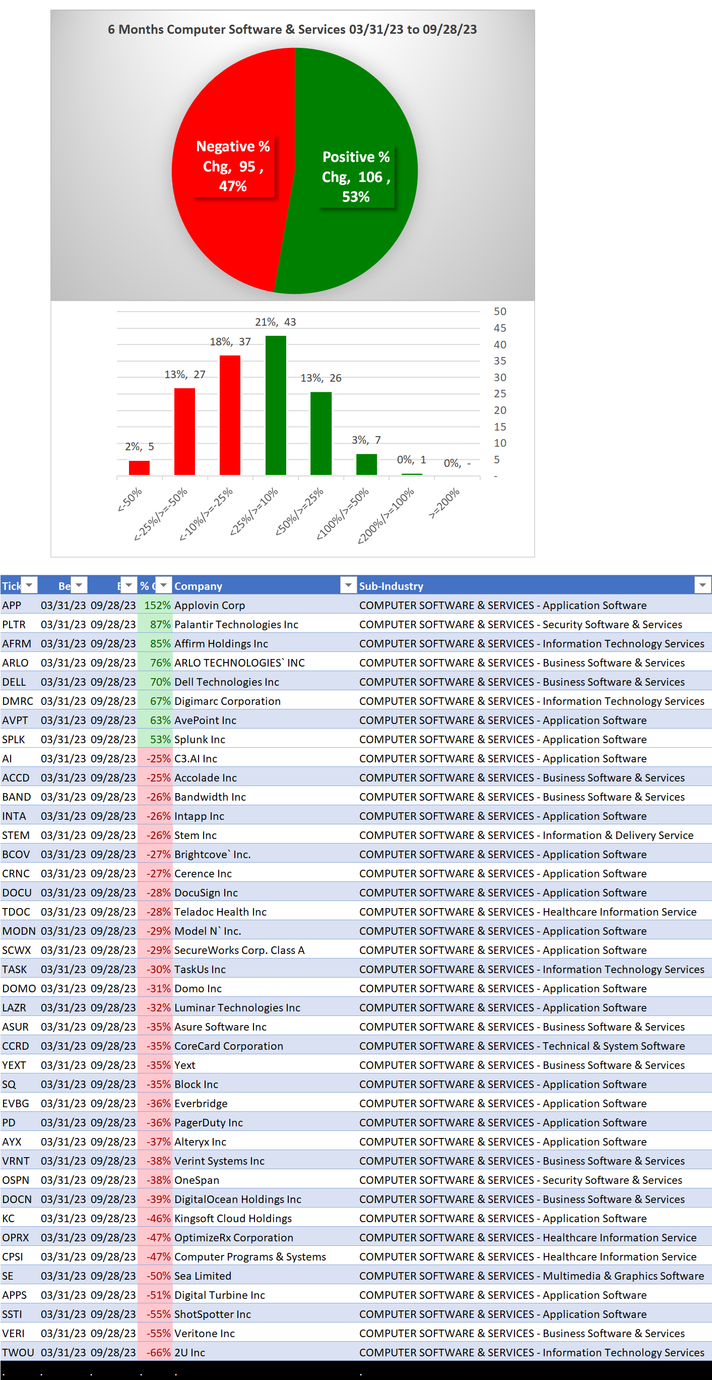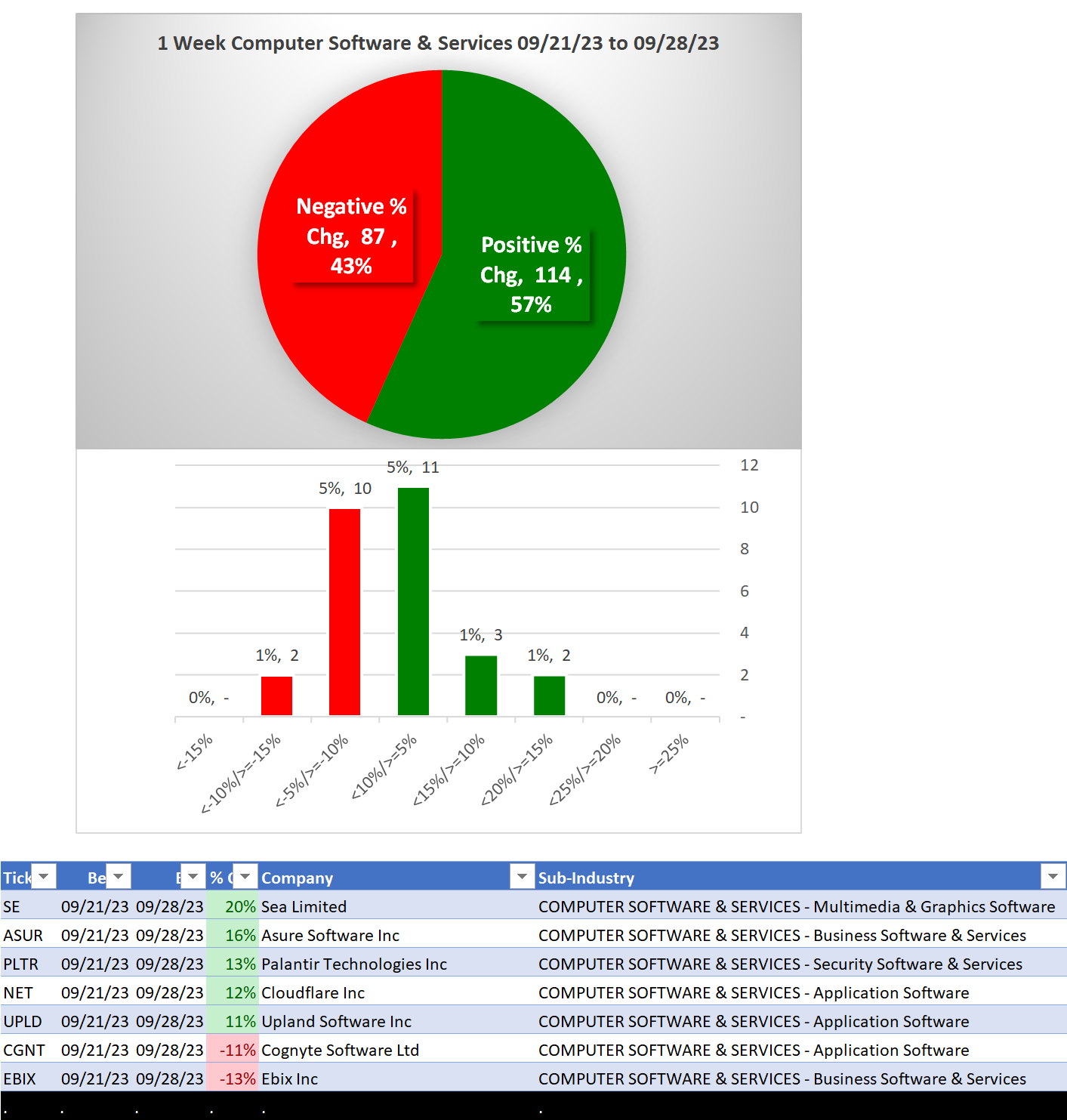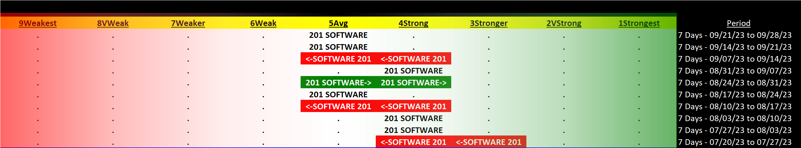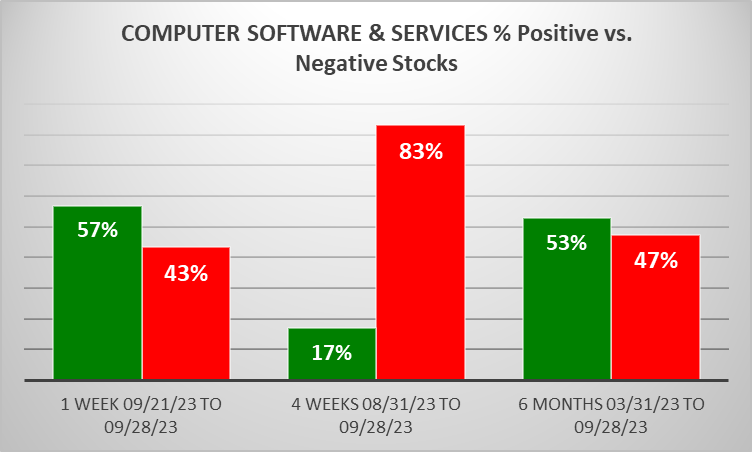 Computer Software & Services 2023-09-28: Unchanged at AVERAGE strength rating (5th strongest of 9 levels), previous move was DOWN