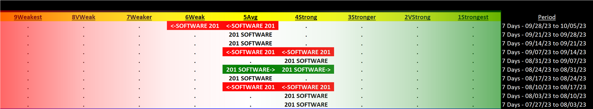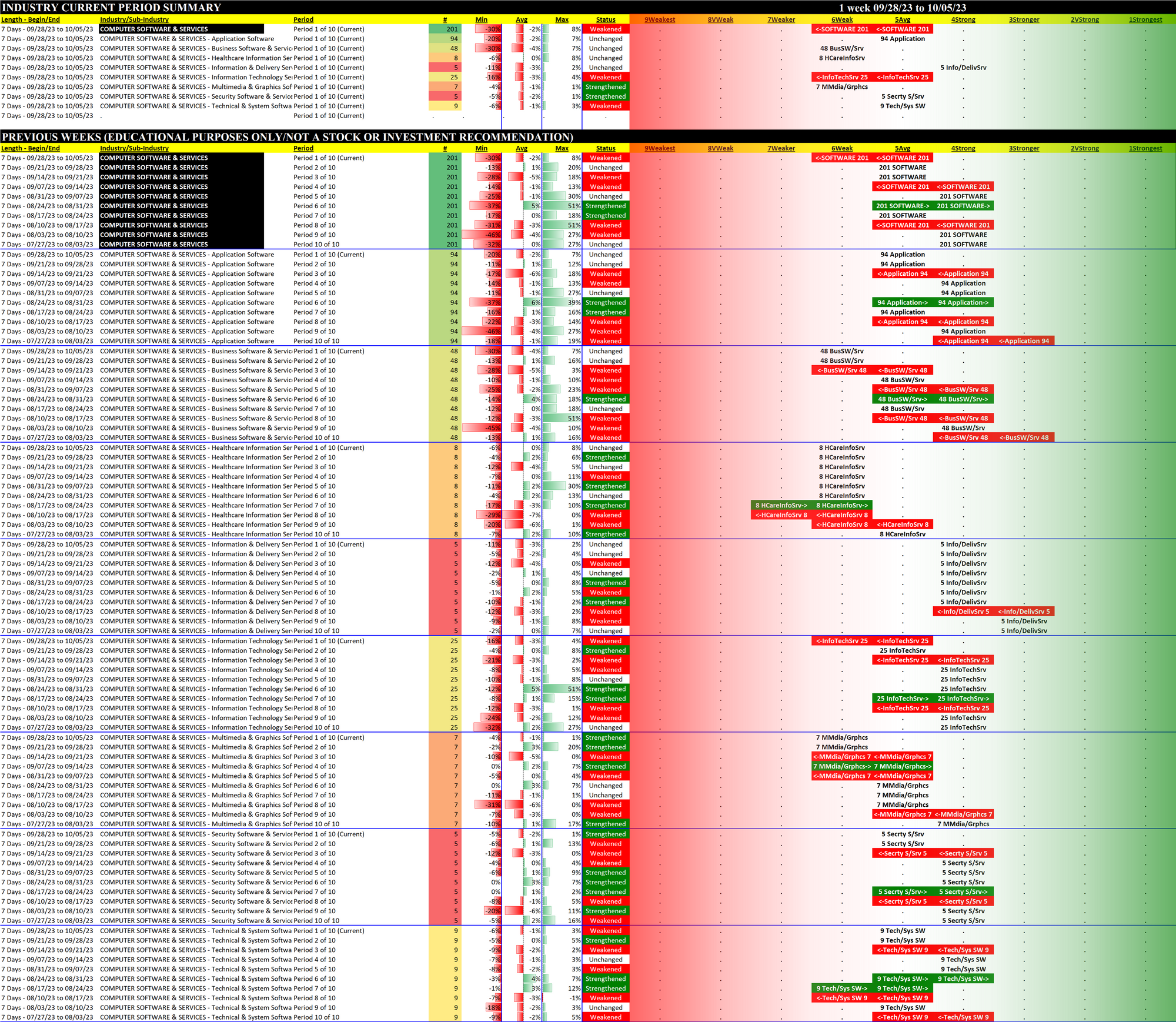 Computer Software & Services 2023-10-05: DOWN -1 to WEAK strength rating (6th strongest of 9 levels), previous move was also DOWN