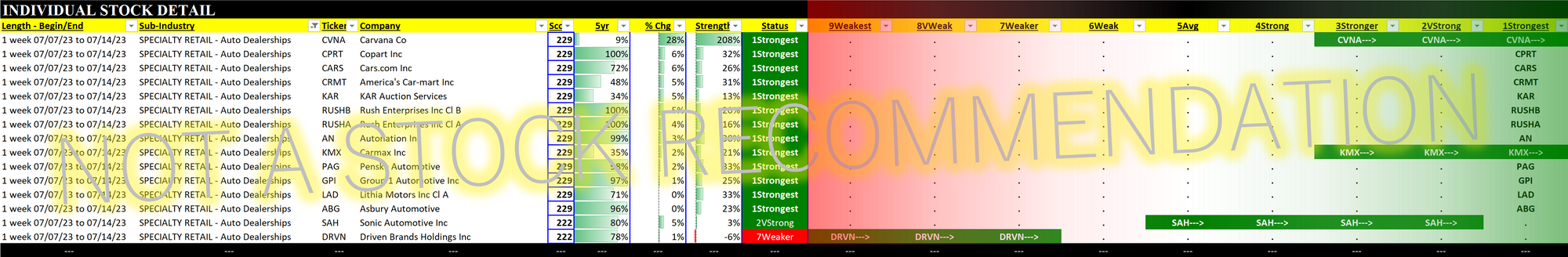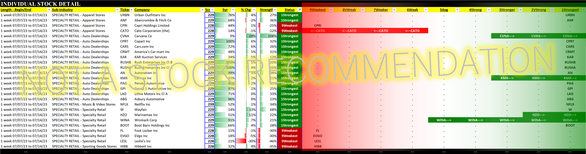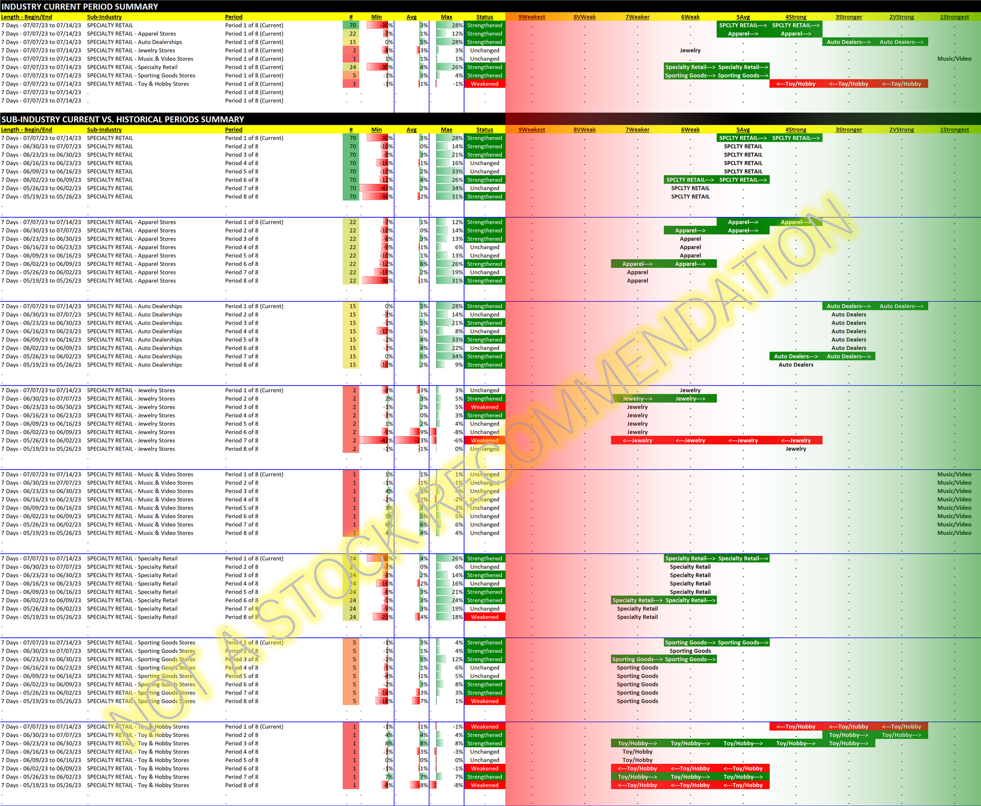 Specialty Retail 2023-07-14: +1 to "Strong" strength rating (4th strongest of 9 levels), previous move was also up