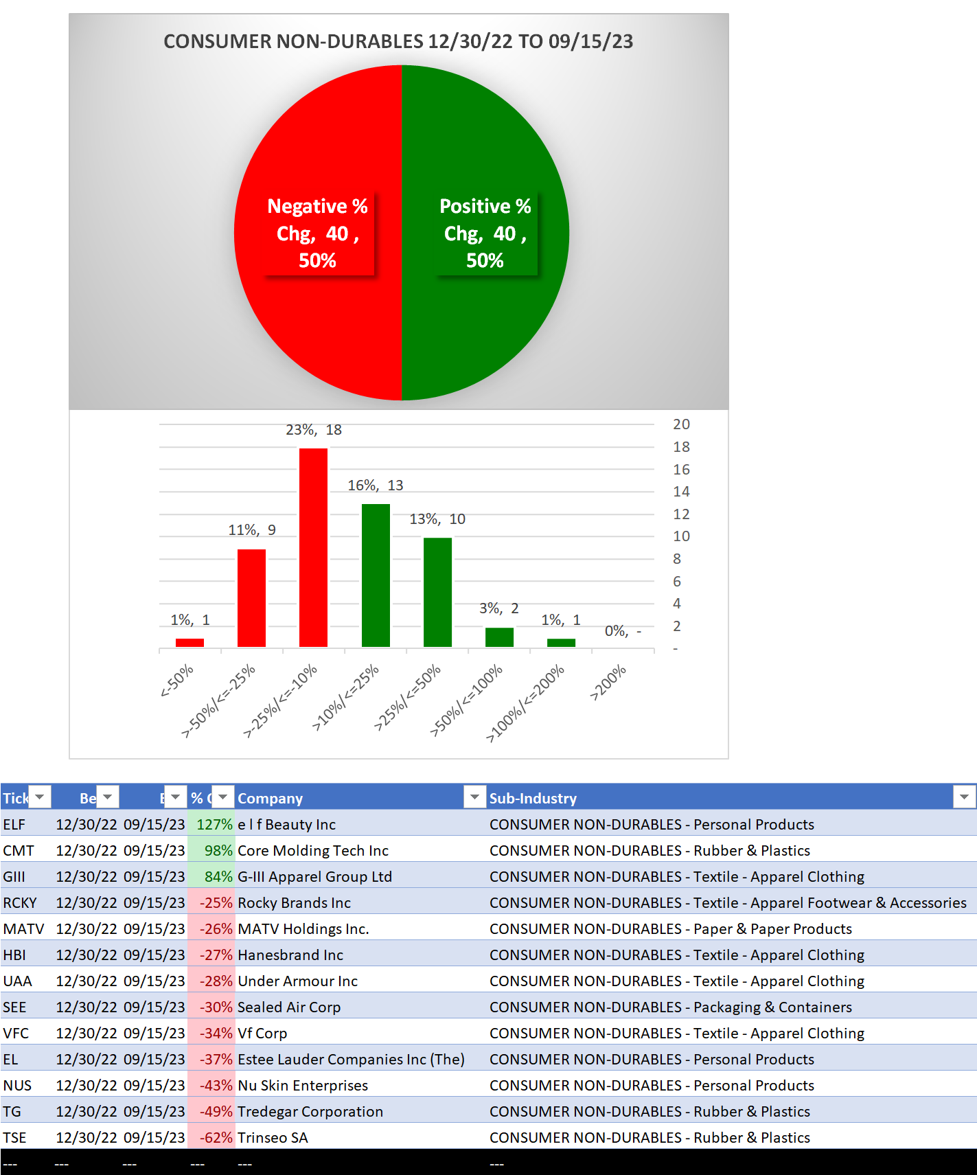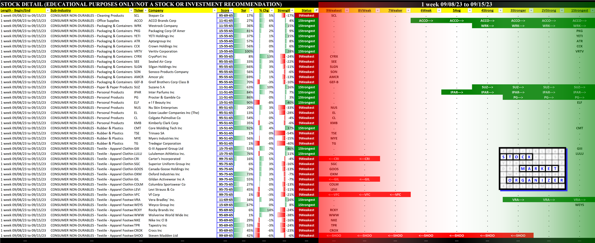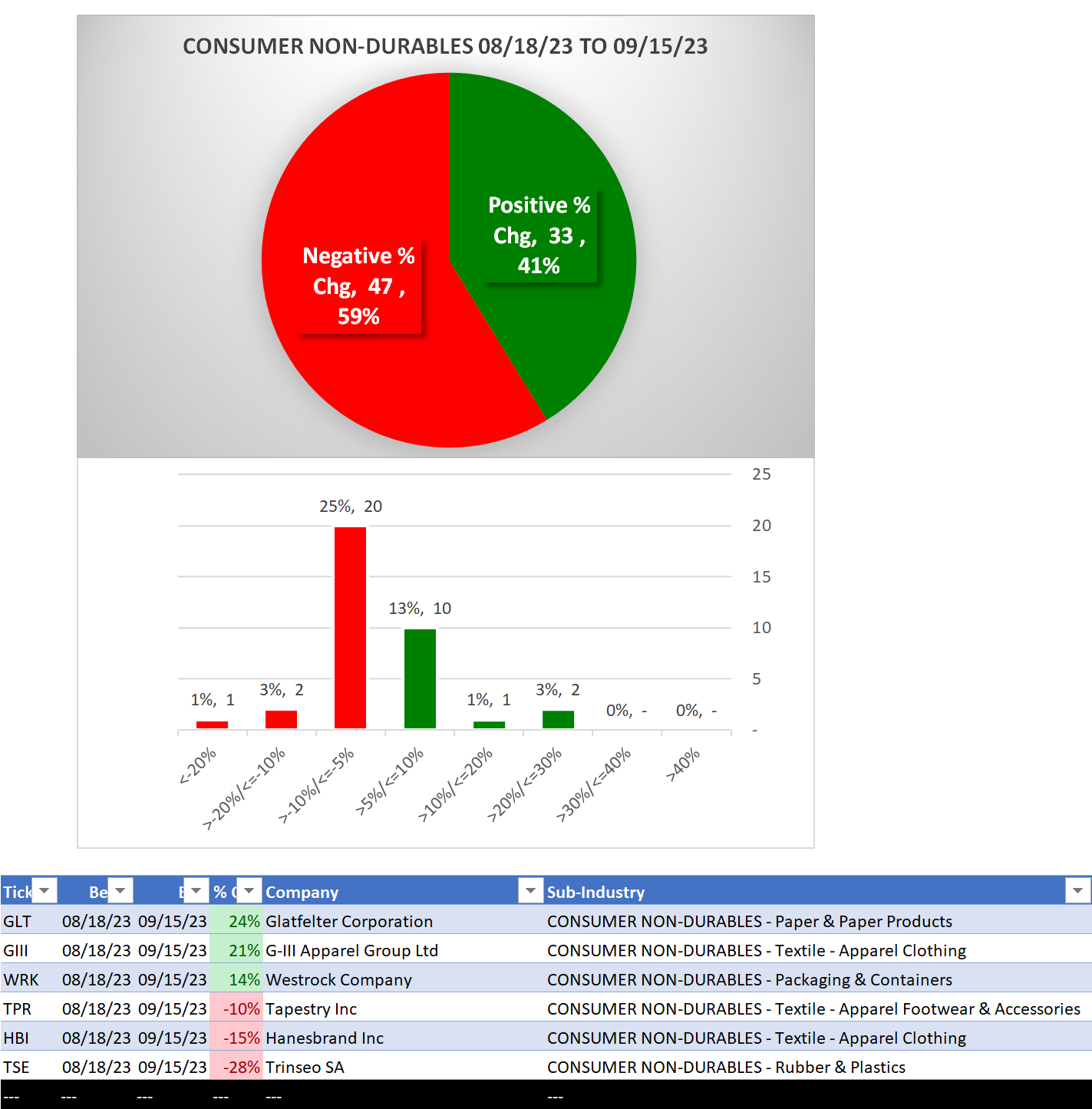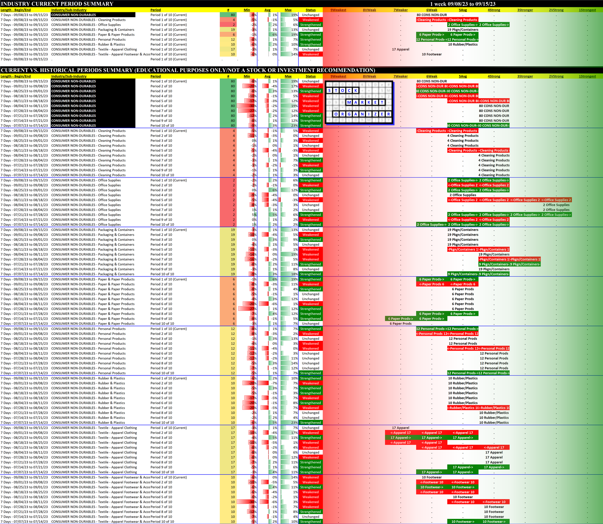 Consumer Non-Durables 2023-09-15: Unchanged at WEAK strength rating (6th strongest of 9 levels), previous move was DOWN