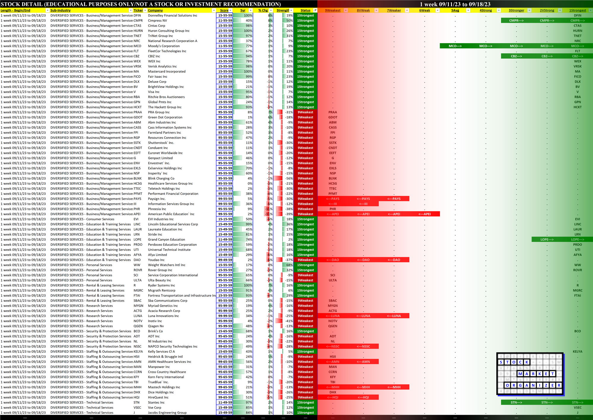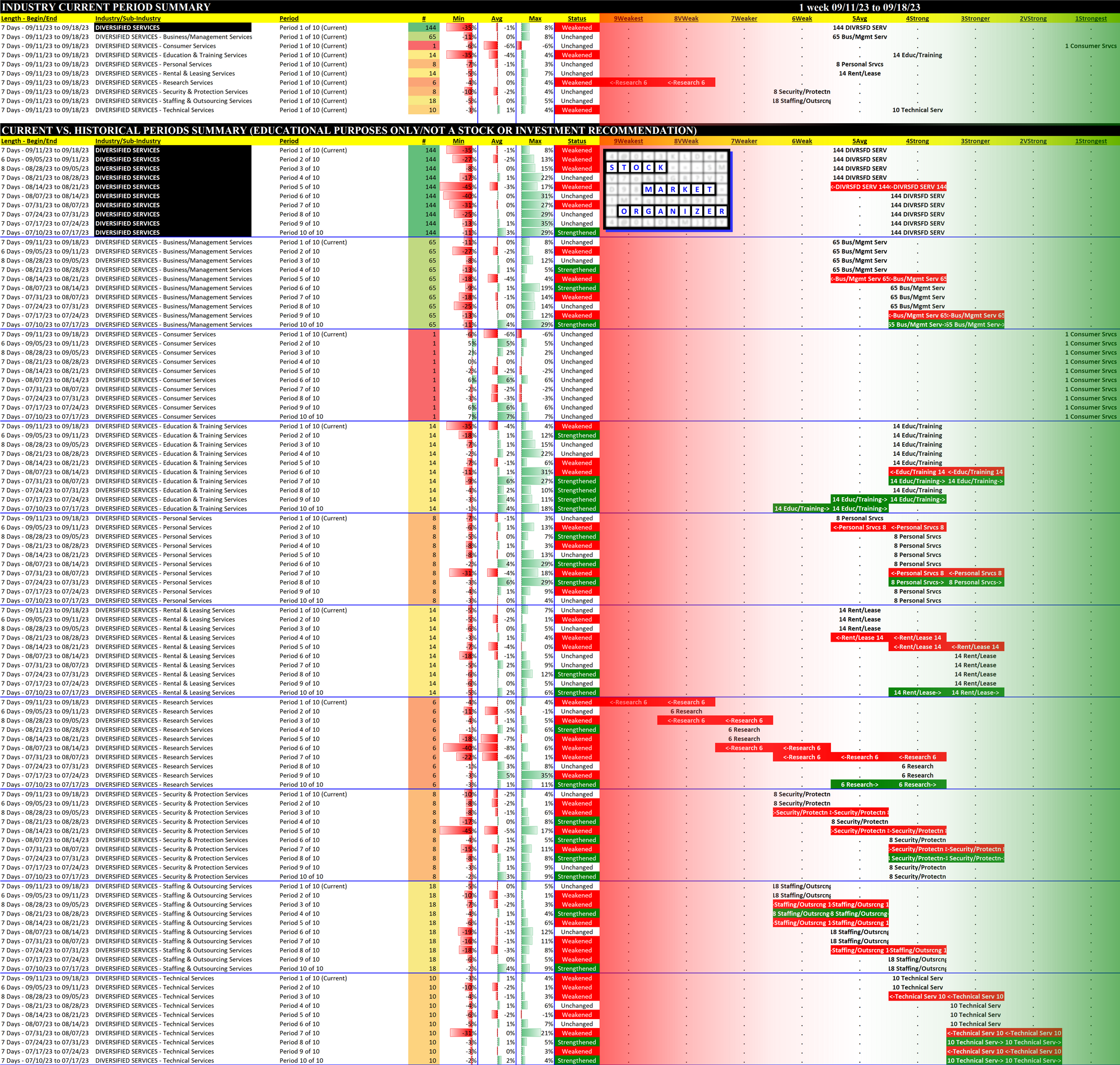 Diversified Services 2023-09-18: Unchanged at AVERAGE strength rating (5th strongest of 9 levels), previous move was DOWN