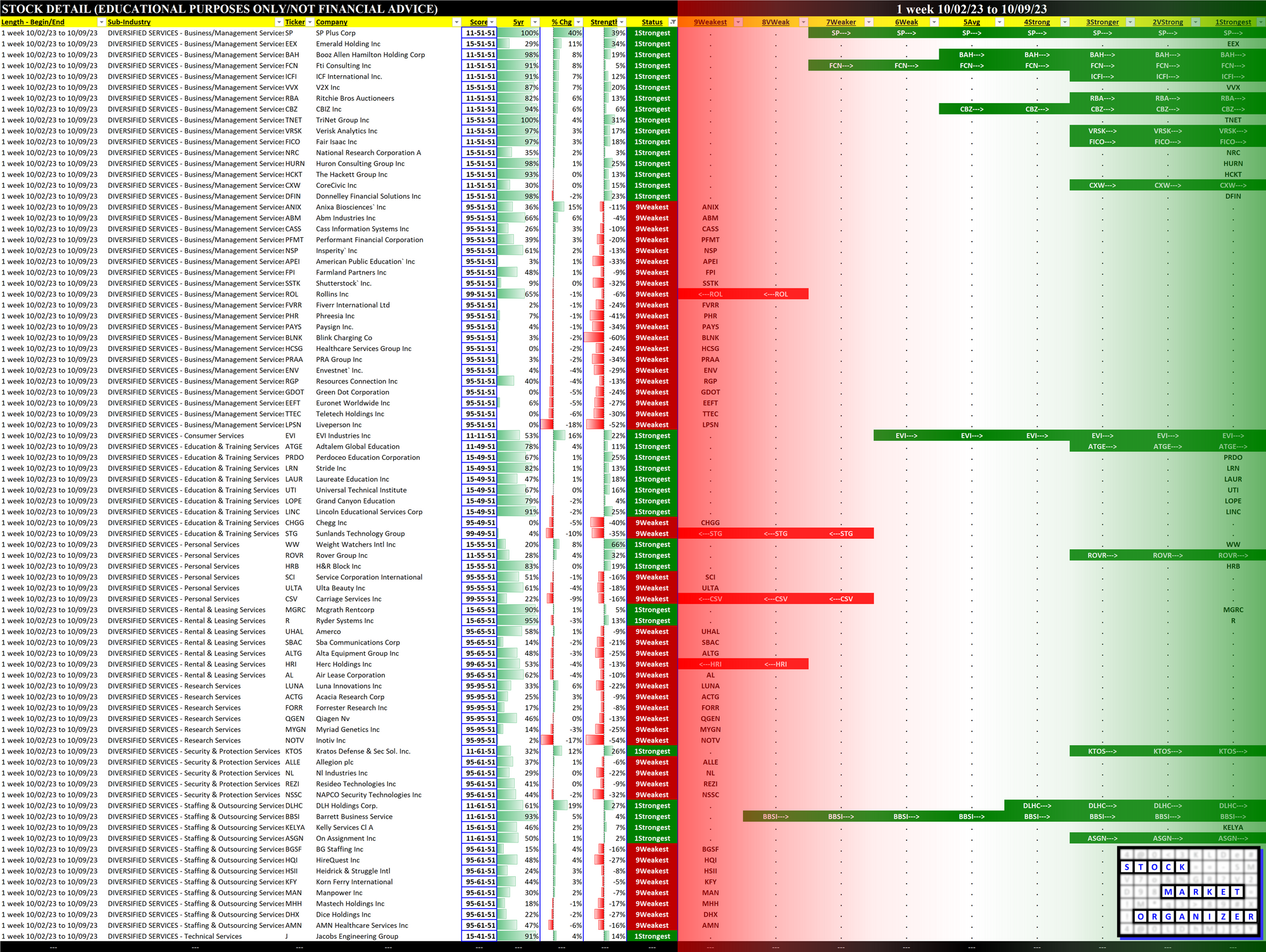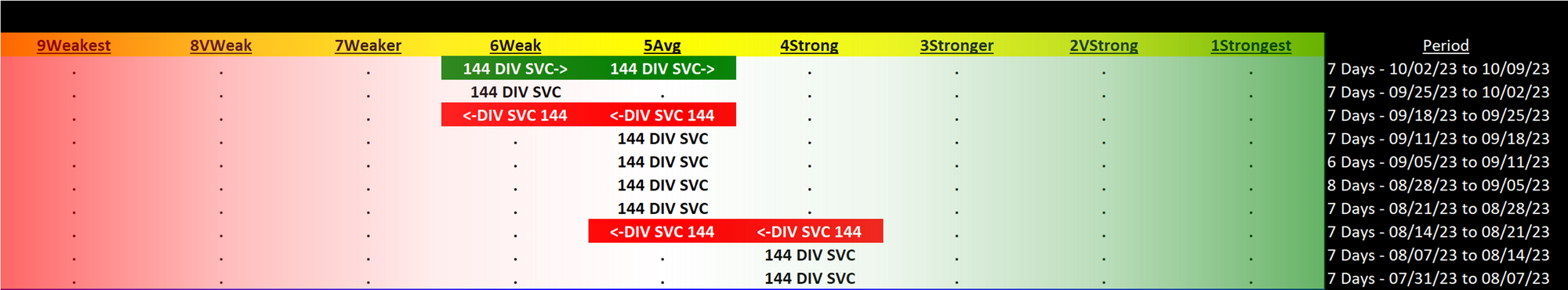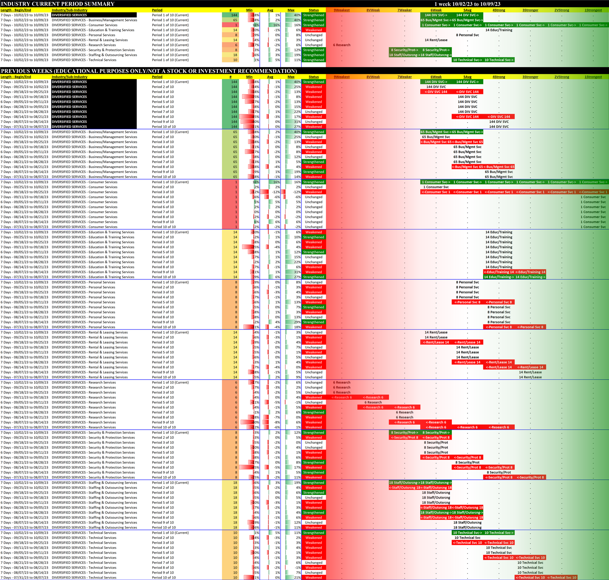 Past 10 Weeks Strengthening/Weakening week-by-week, per the following chart:
