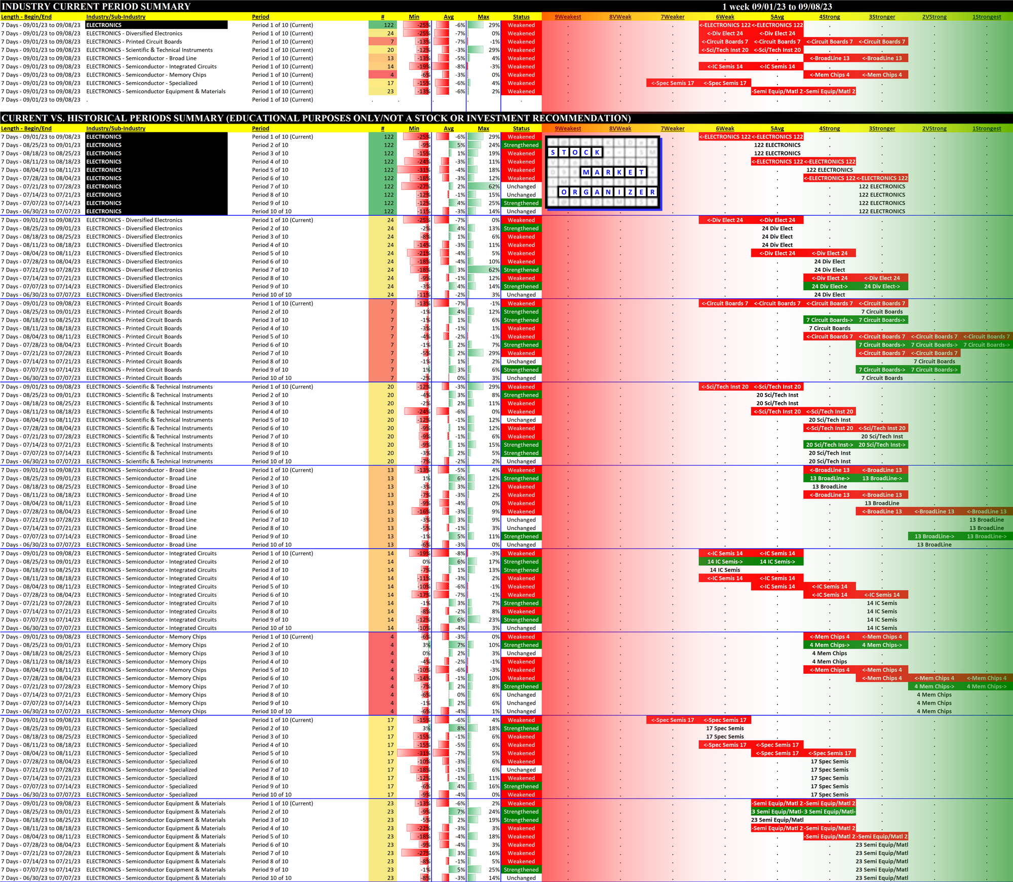 Electronics 2023-09-08: -1 to "WEAK" strength rating (6th strongest of 9 levels), previous move was also DOWN