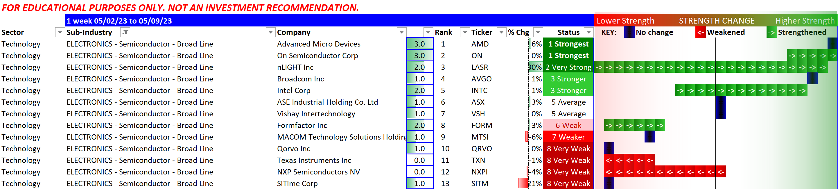 Electronics (Semiconductors) strength status as of 2023-05-09?