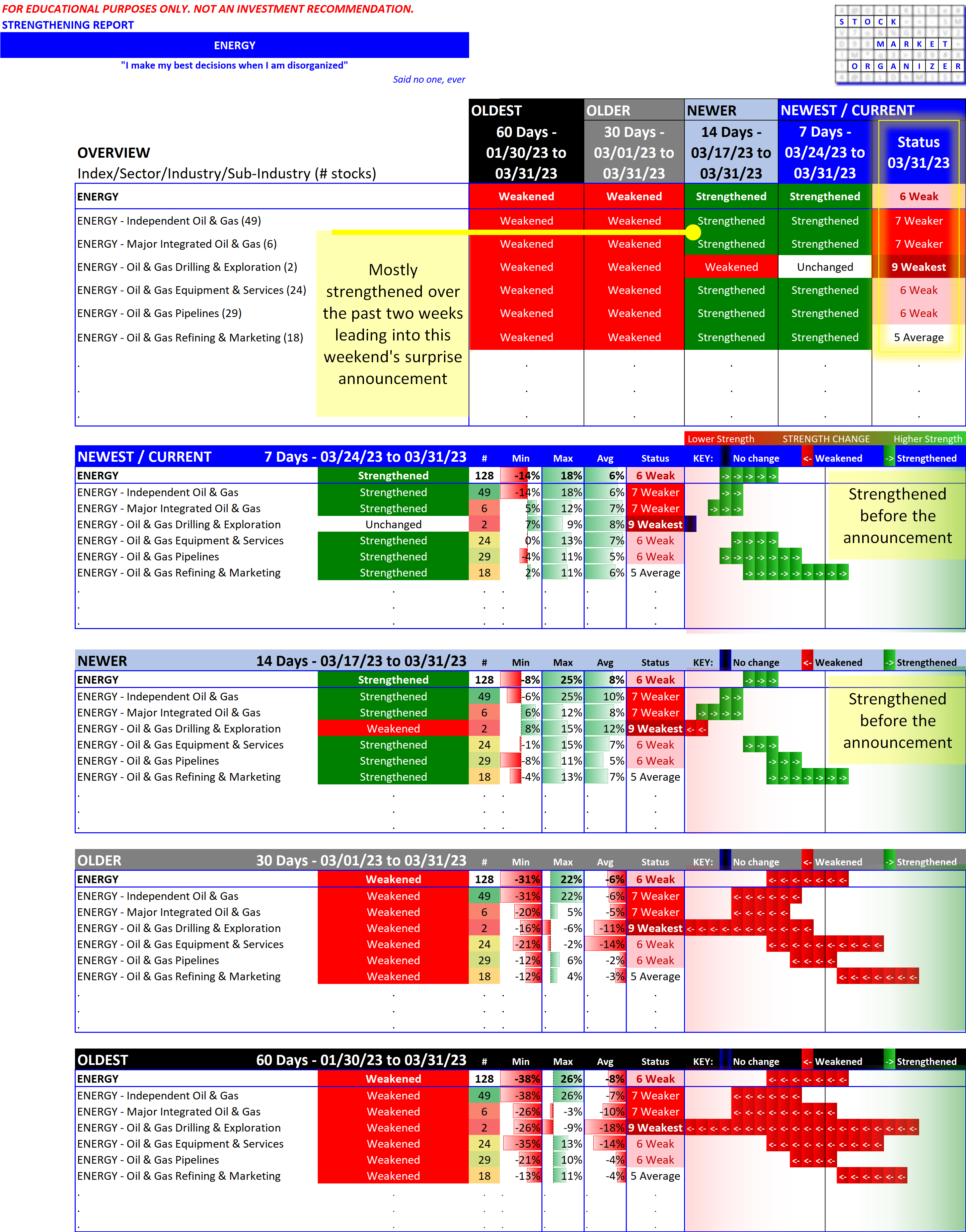Energy sub-industries were weak but strengthening 2023-03-31 (before surprise OPEC production cuts announcement)