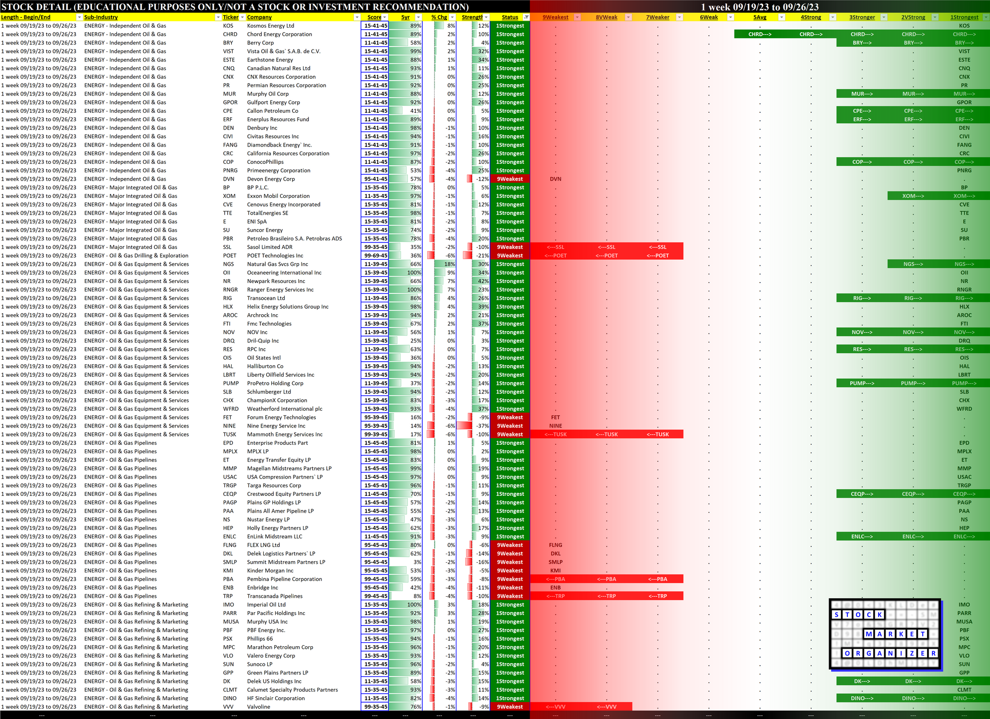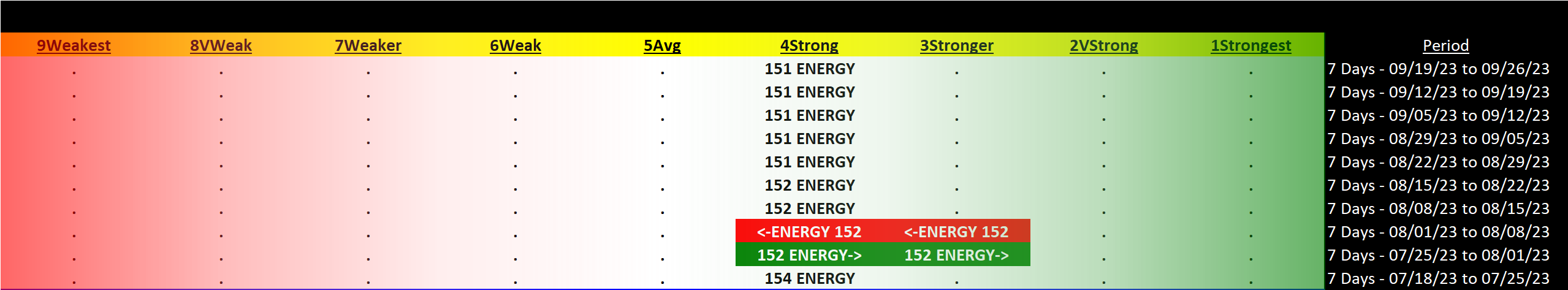 Energy 2023-09-26: Unchanged at STRONG strength rating (4th strongest of 9 levels), previous move was DOWN