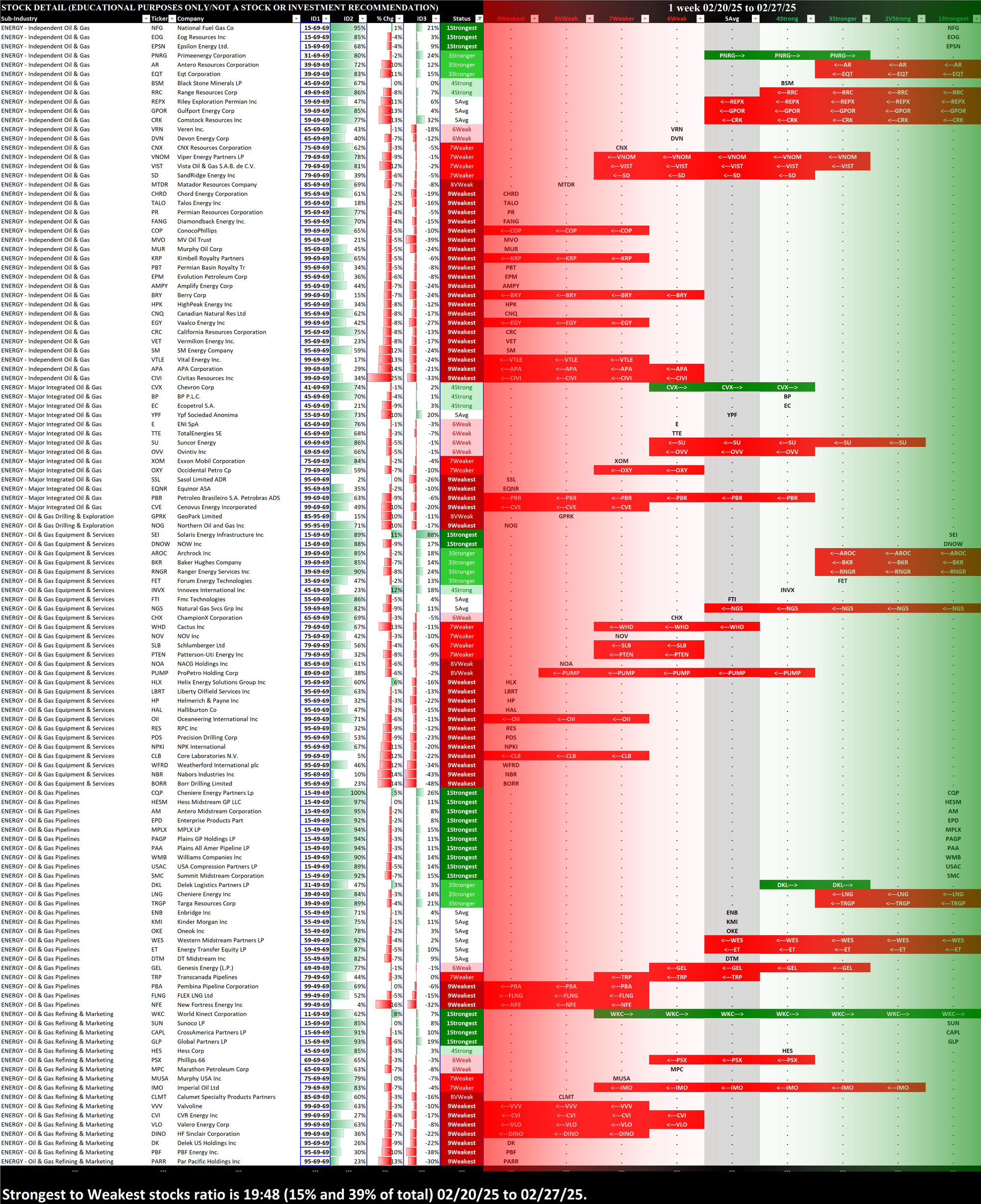 Note the Strongest to Weakest stocks ratio is 19:48 (15% and 39% of total) from 02/20/25 to 02/27/25.