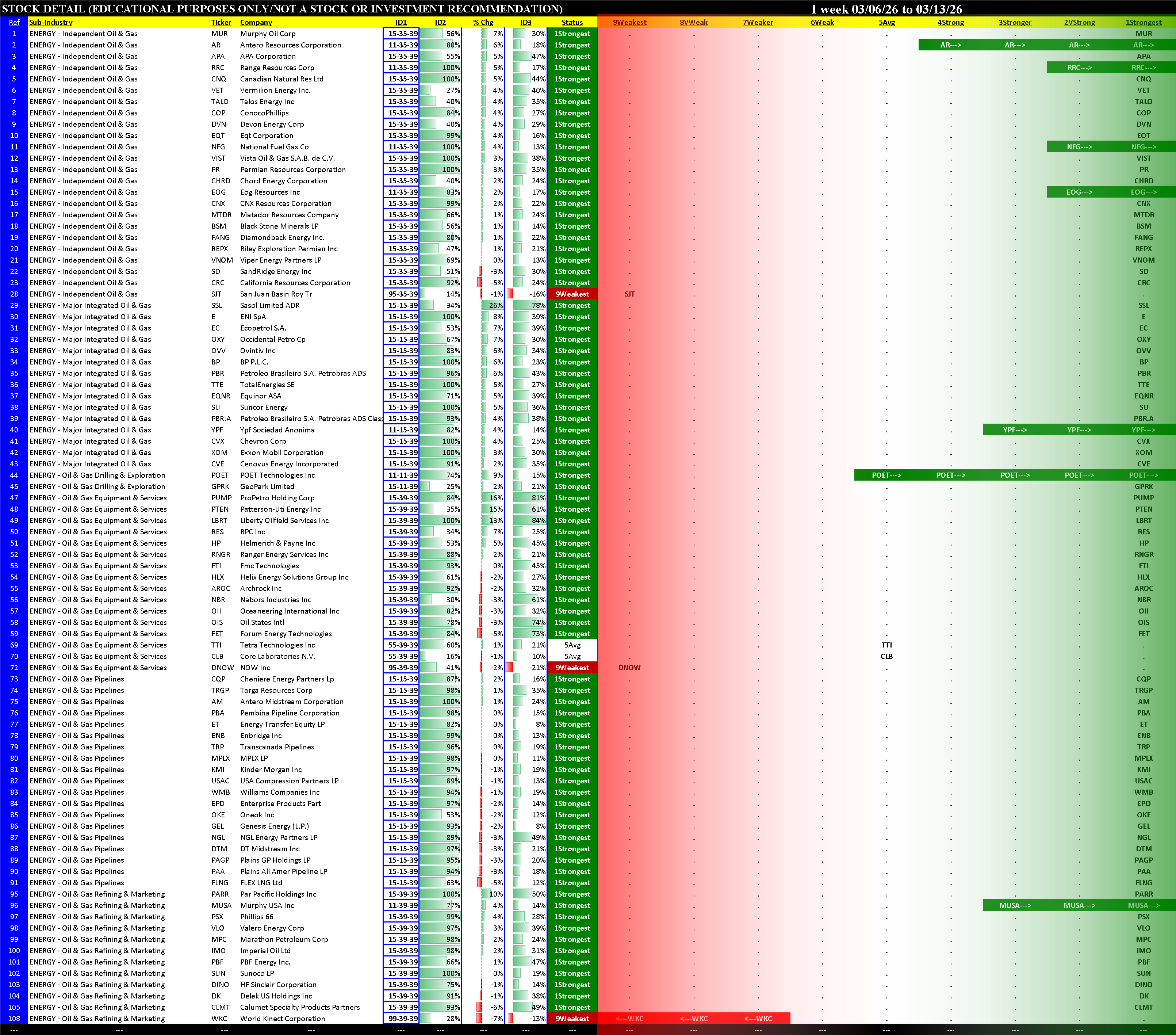 Energy Industry Fri 2026-03-13: Weakened/-1 (3Stronger)