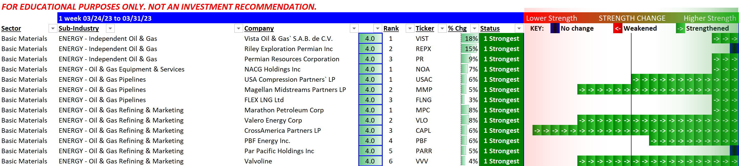 Here is a look at the strongest stocks today and on 3/31/23.