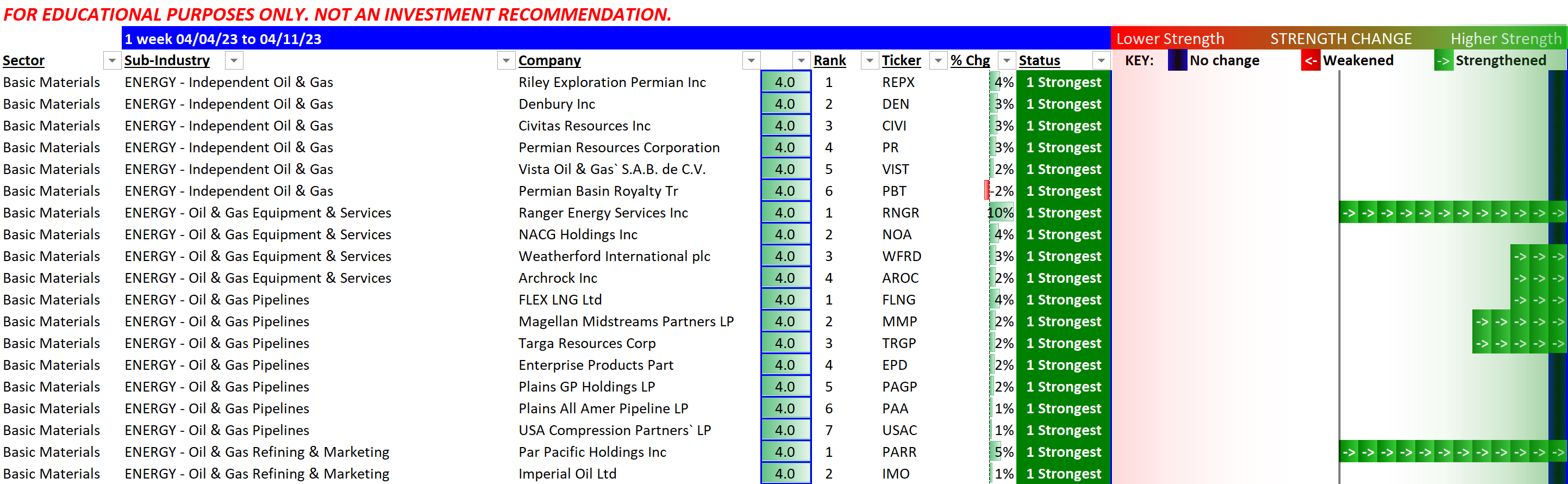 Energy strength status as of 2023-04-11?