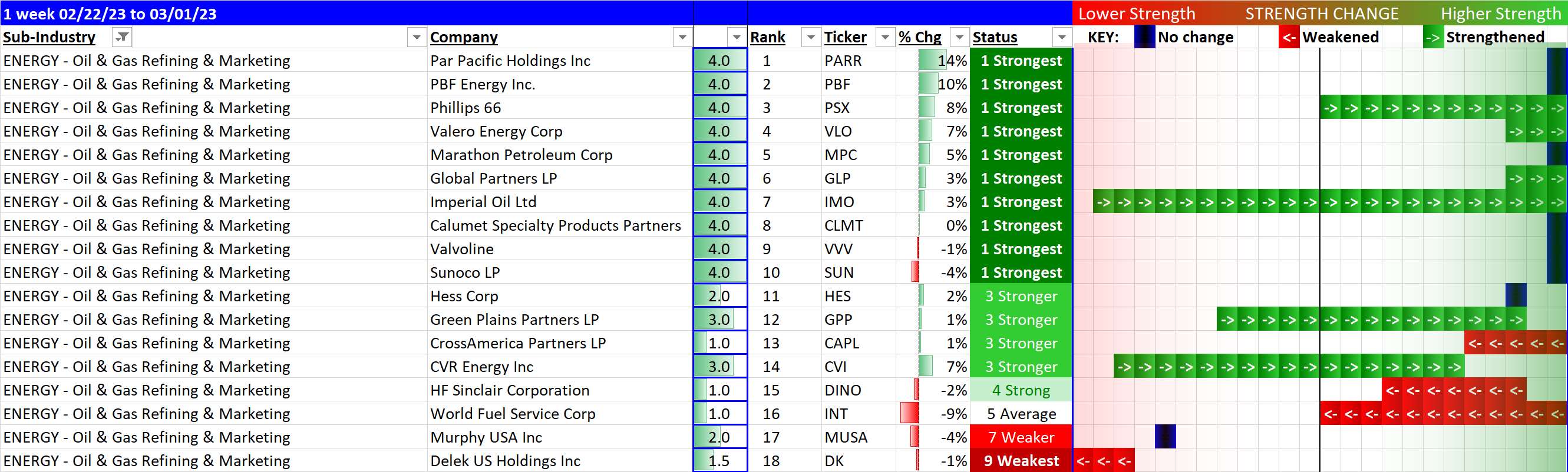 Energy Strengthened 2023-03-01, still room to strengthen for each sub-industry