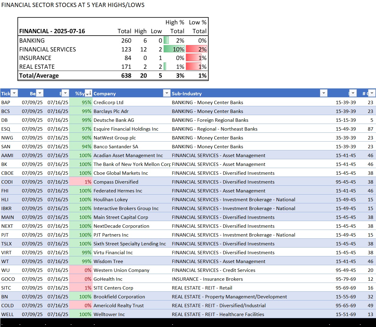 Financial Sector -0.1 week ending Wed 2025-07-16 (4.4 Strength Score)