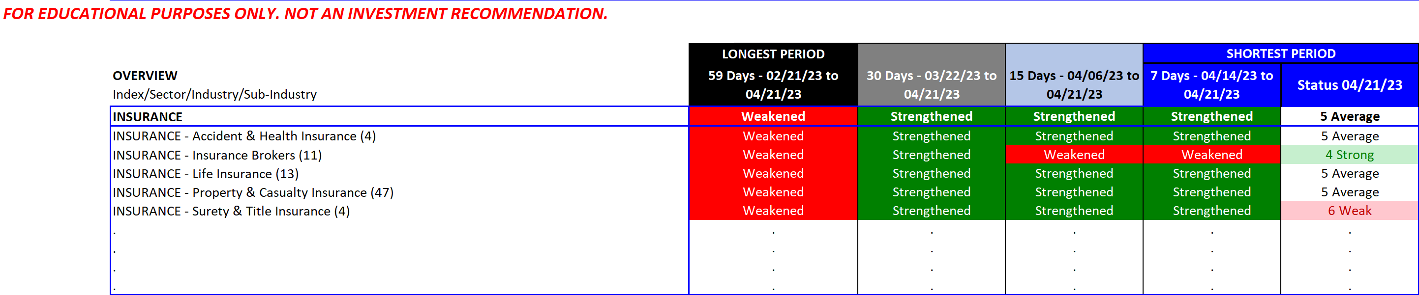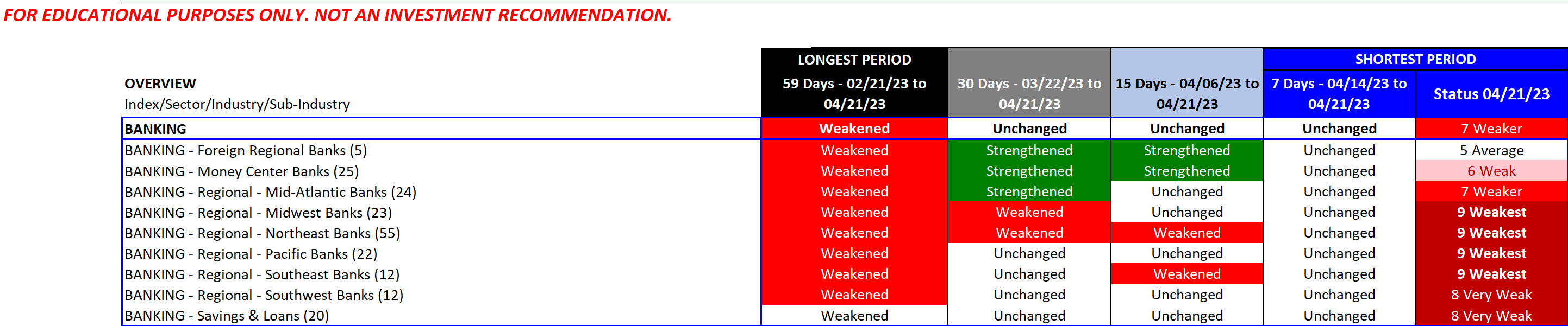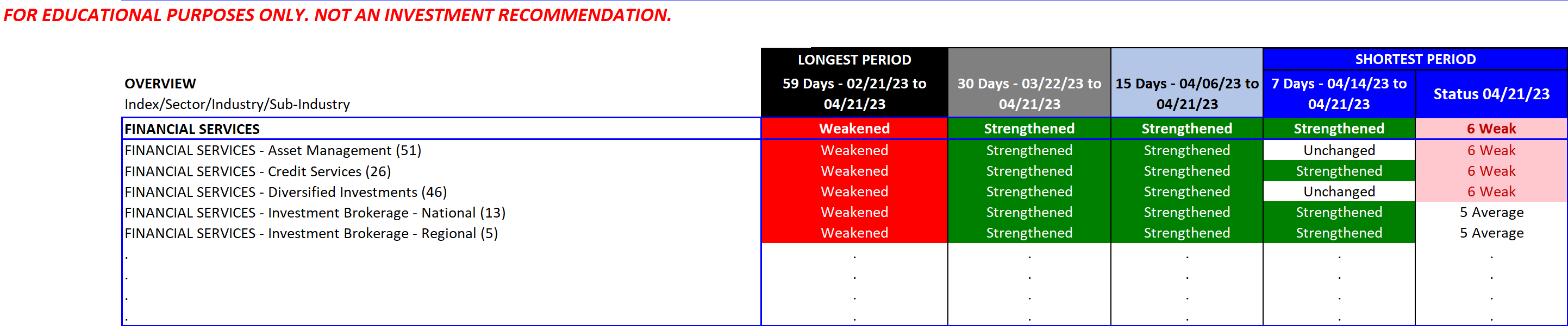 Wondering how the underlying industries in the Financial Sector compare with each other? Specifically, Banking, Financial Services, Insurance, and Real Estate. The linked report below provides a unique look at this.