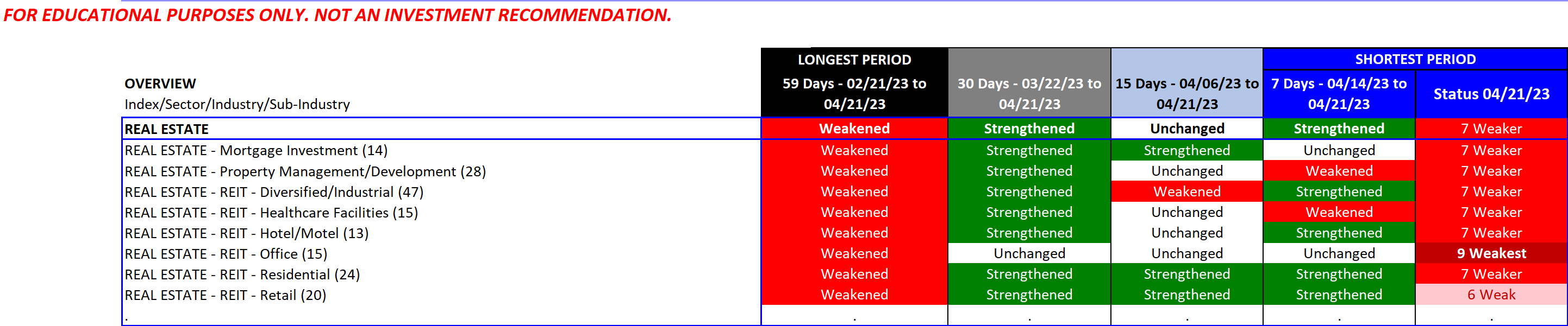 Banking and Real Estate remain the weakest in the Financial sector.