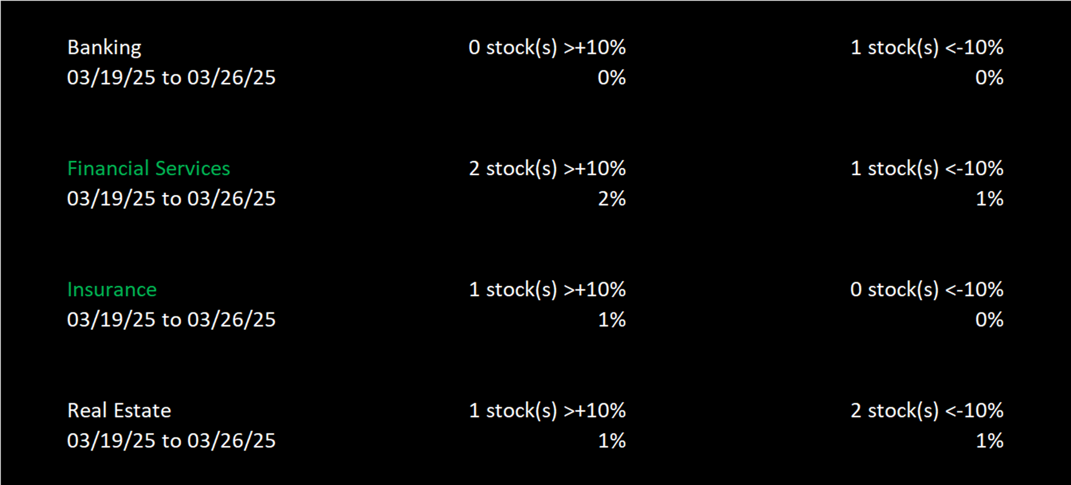 Sector Weekly Summary