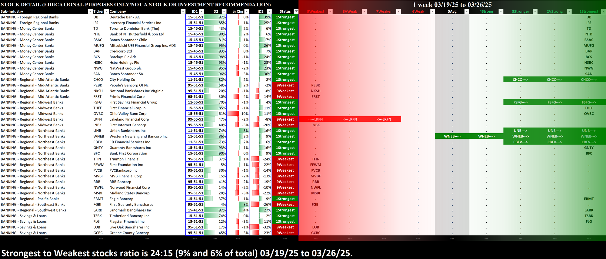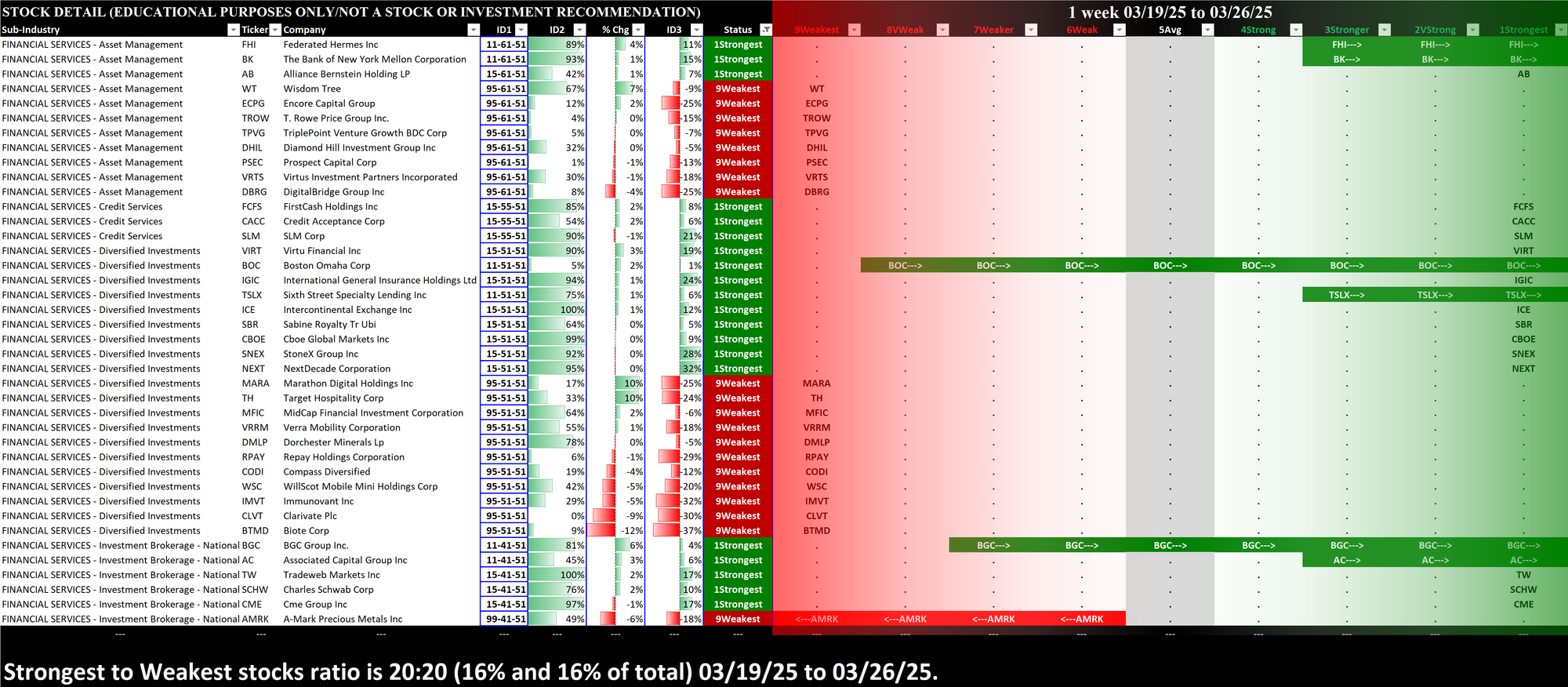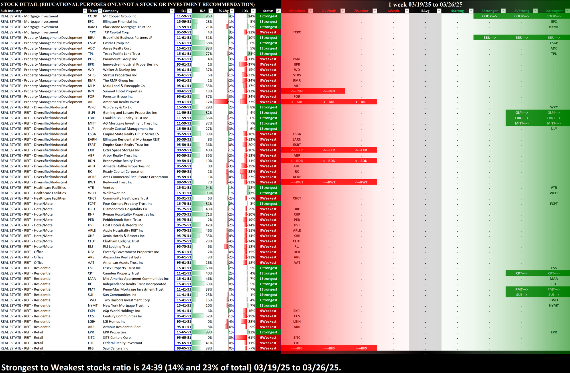 What: stocks currently rated Strongest/Weakest (highest/lowest of 9 strength ratings)