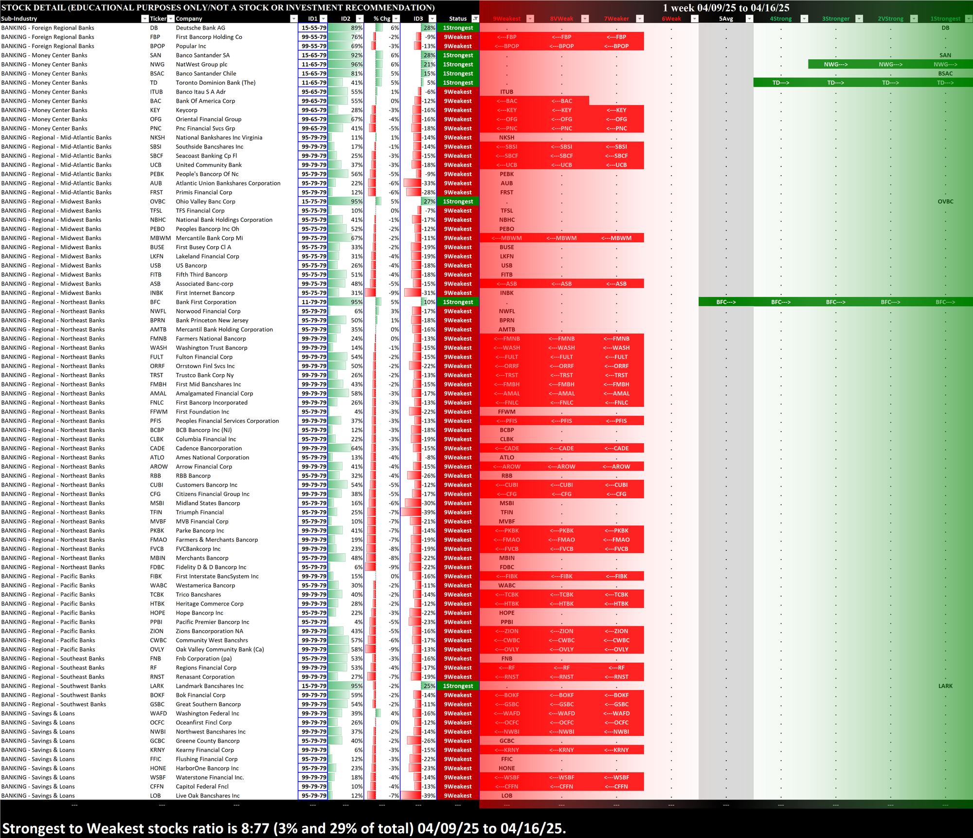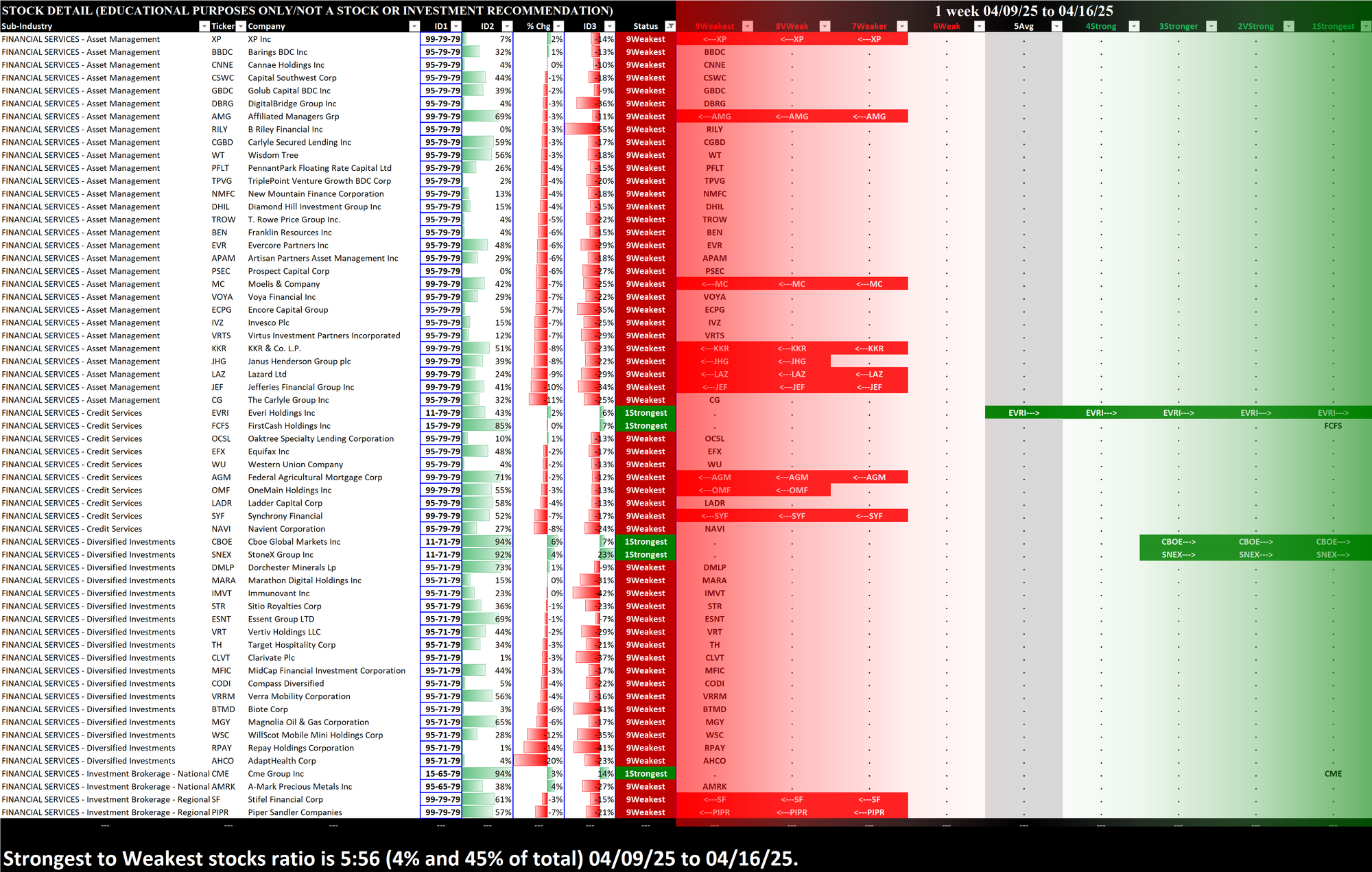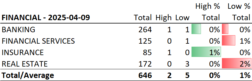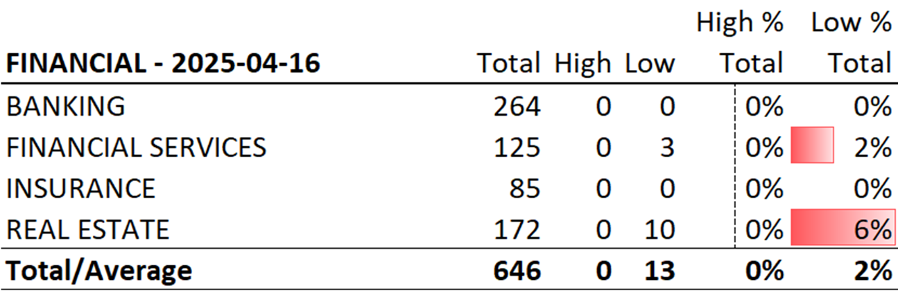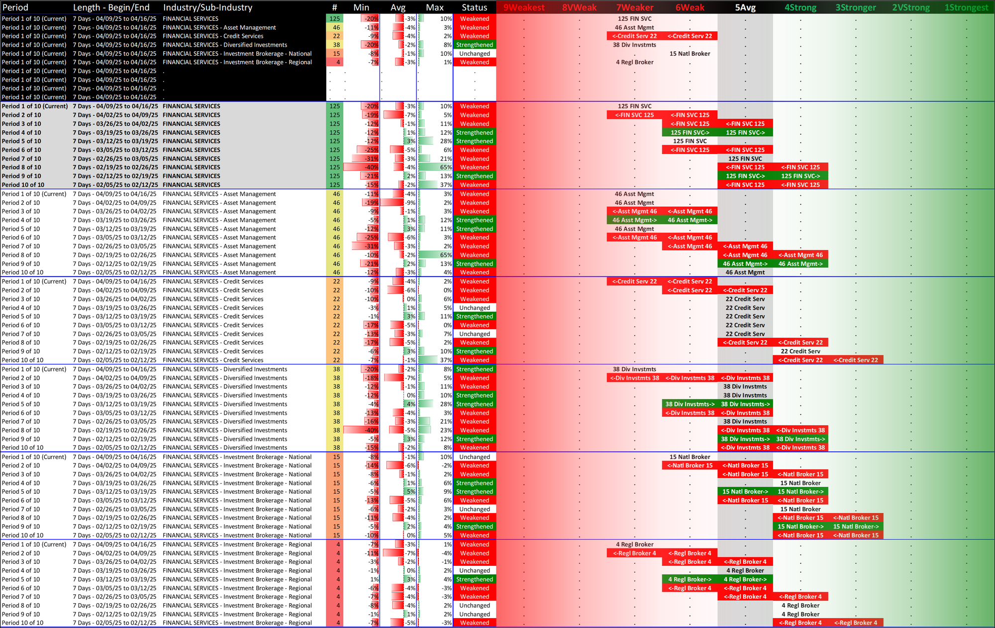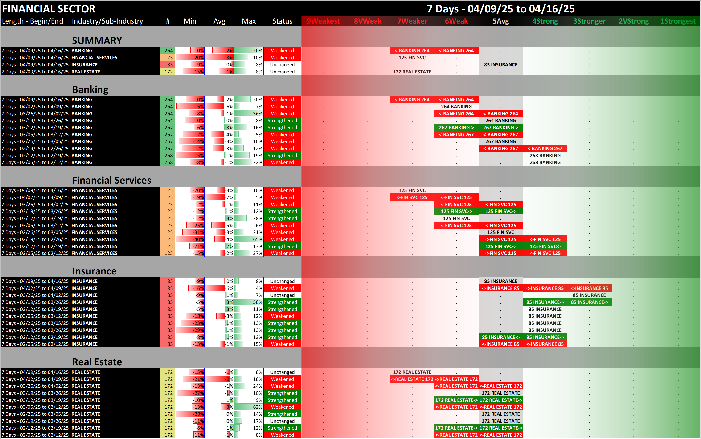 Financial Sector Wed 2025-04-16: 6.7 Strength Score (Weakened -0.4)