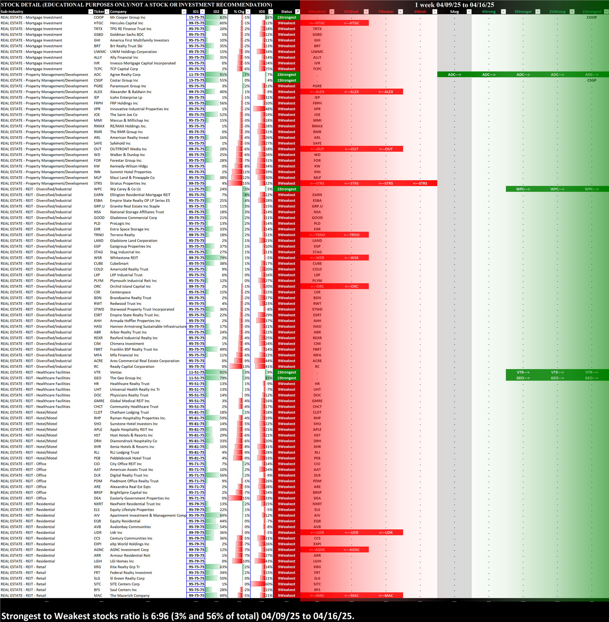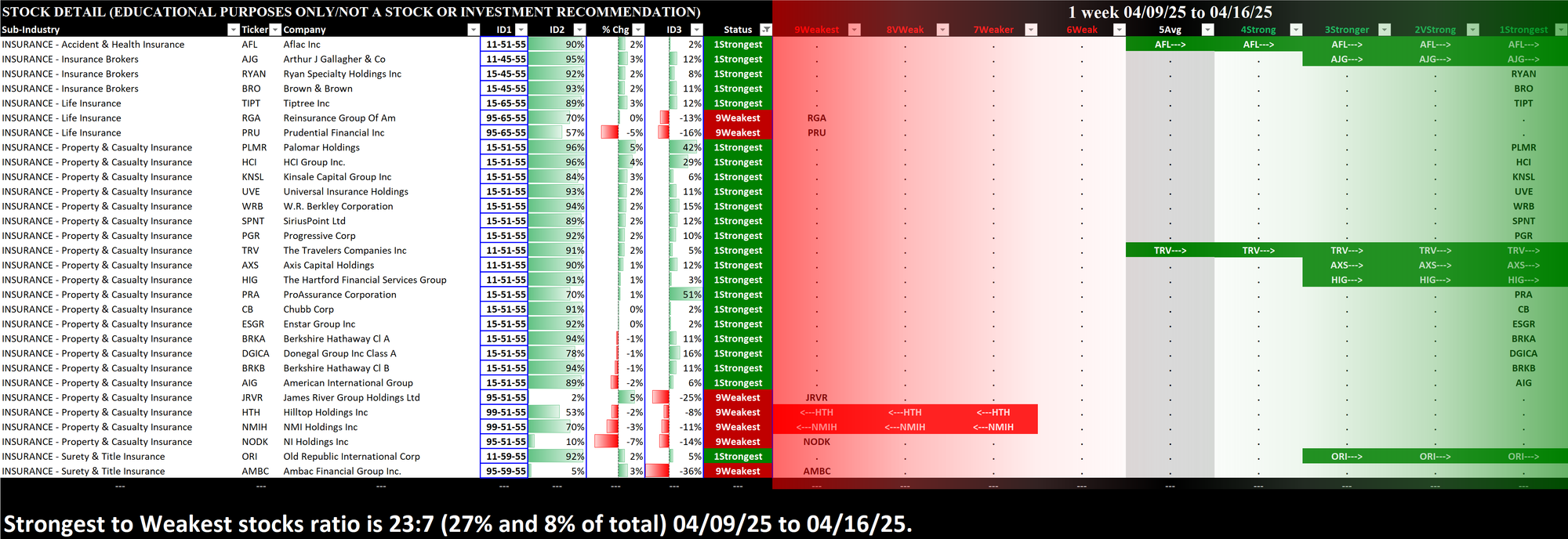 Note that today Wednesday April 16, 2025 was a very weak day in the market (Dow 30 -1.7%, NDX -3%, S&P500 -2.2%) so measurements after today will be weaker compared to yesterday's ETF analysis.