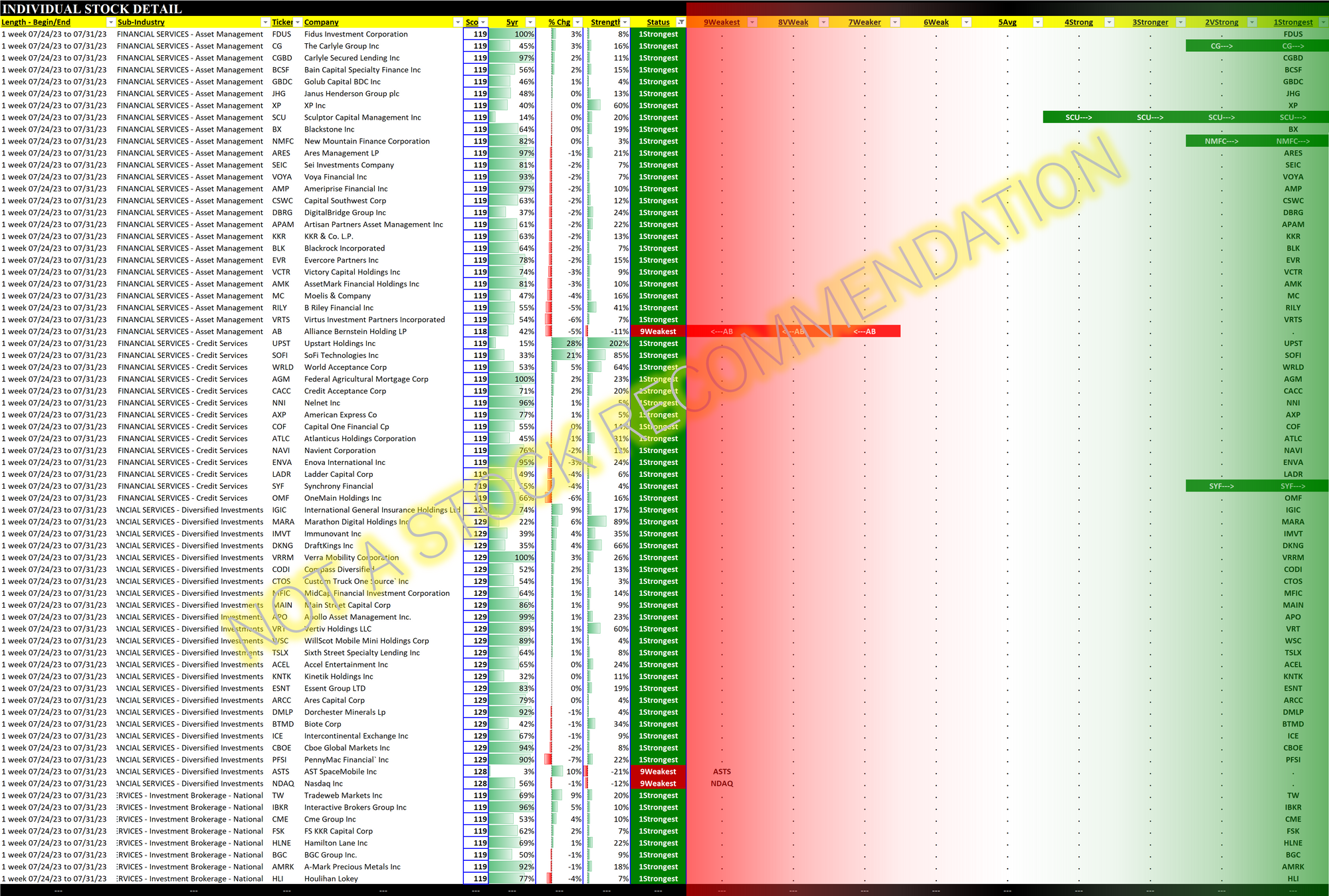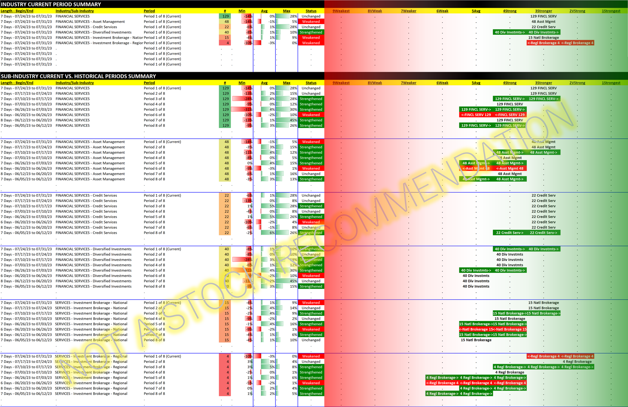 Financial Services 2023-07-31: Unchanged at "Stronger" strength rating (3rd strongest of 9 levels), previous move was up