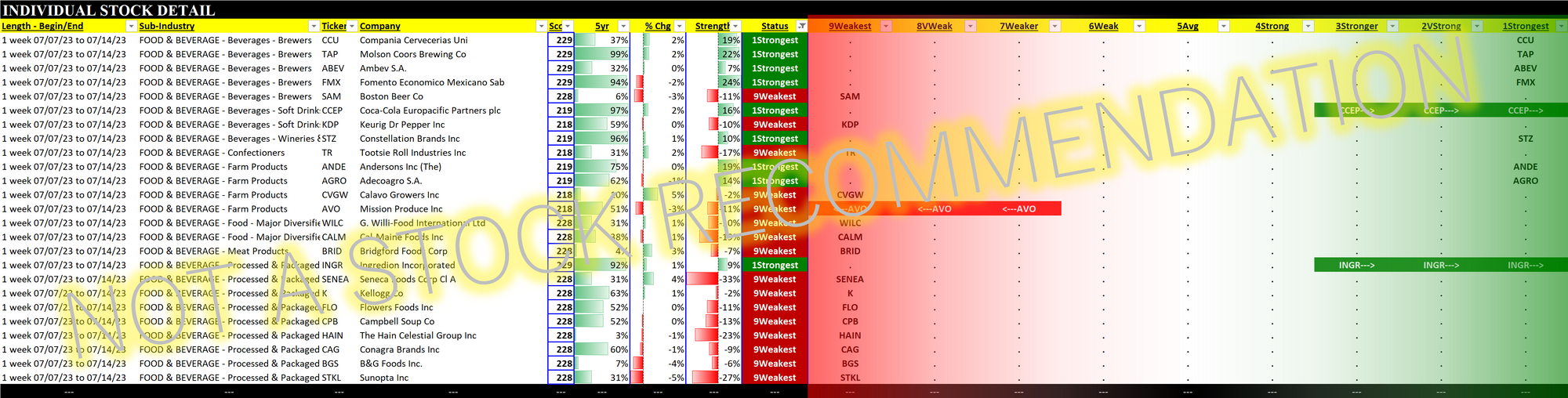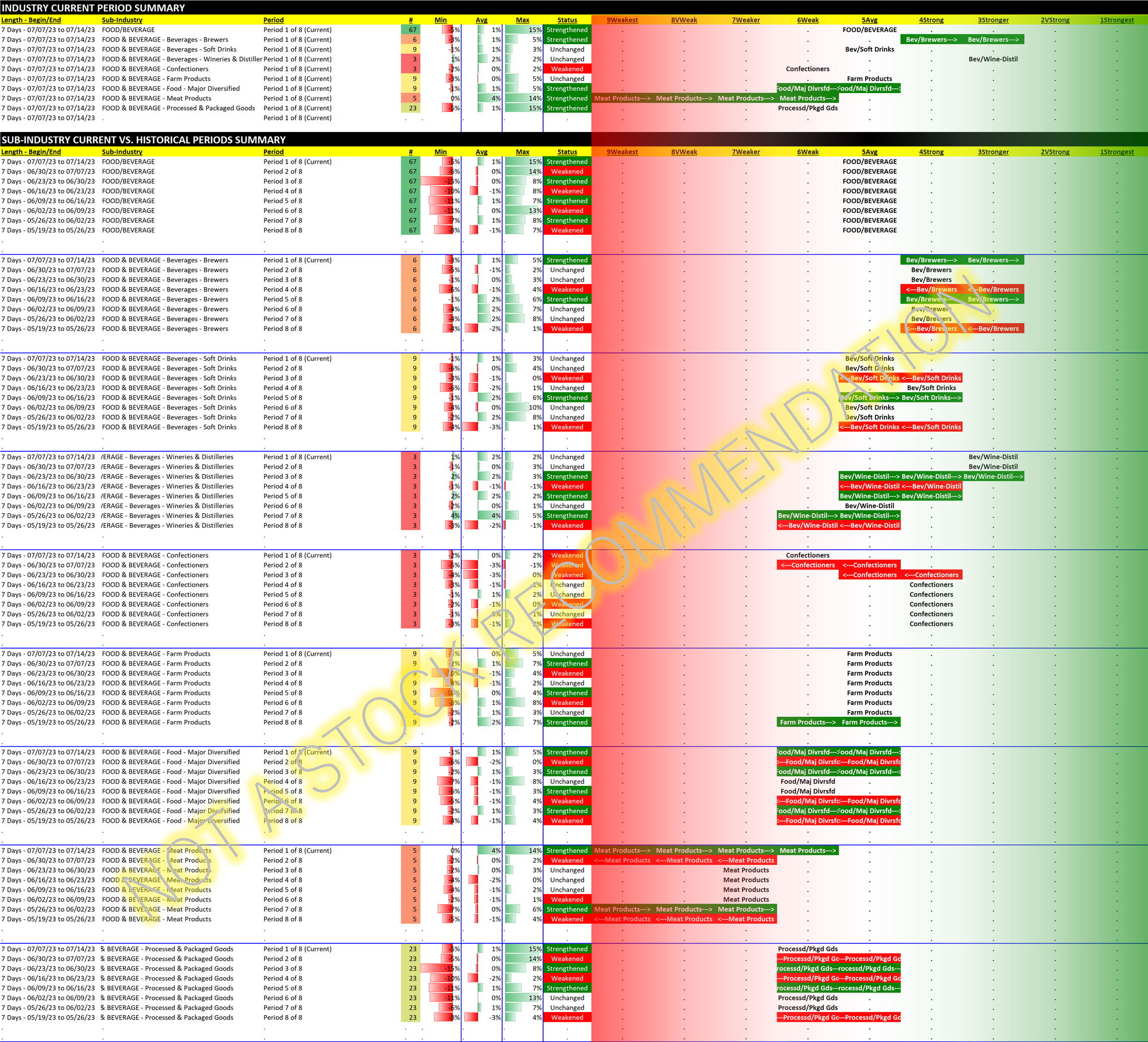 Food & Beverage 2023-07-14: Unchanged at "Average" strength rating (5th strongest of 9 levels), flat for eight weeks