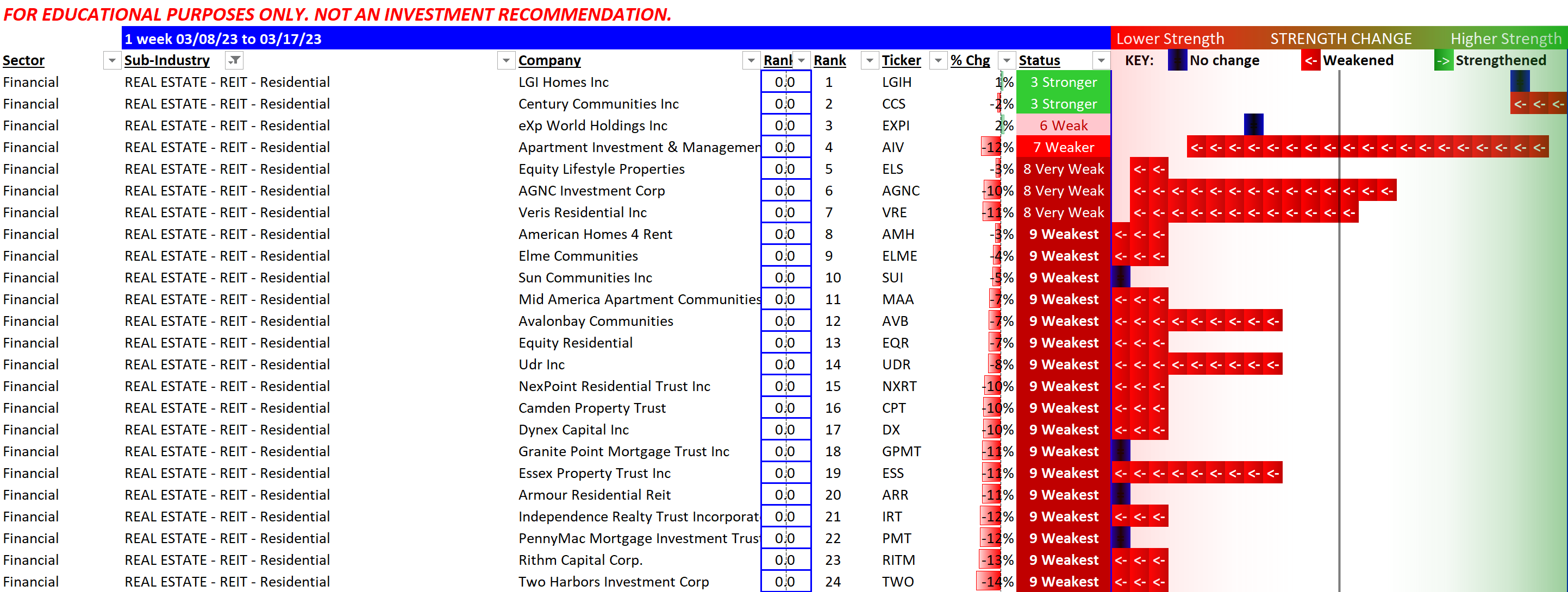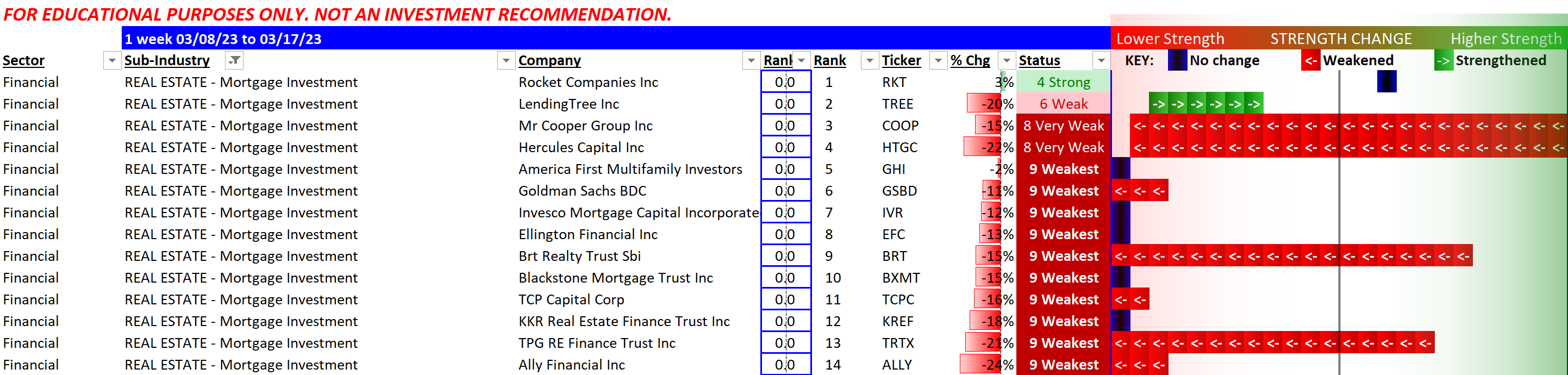 The punch line: the strongest (4 stocks) and weakest (90)