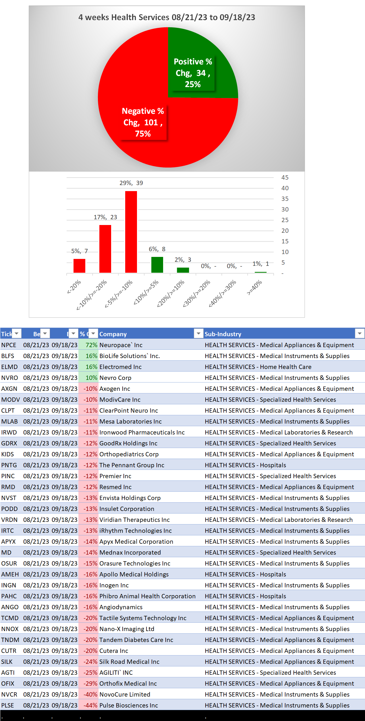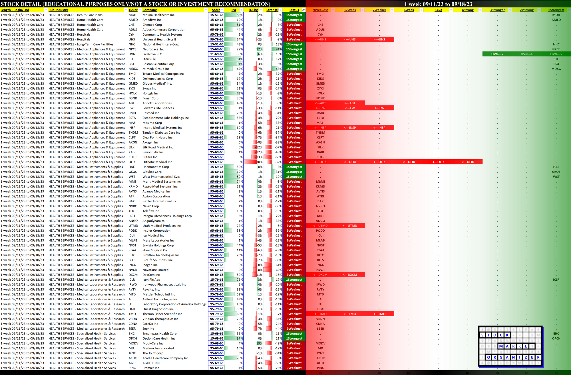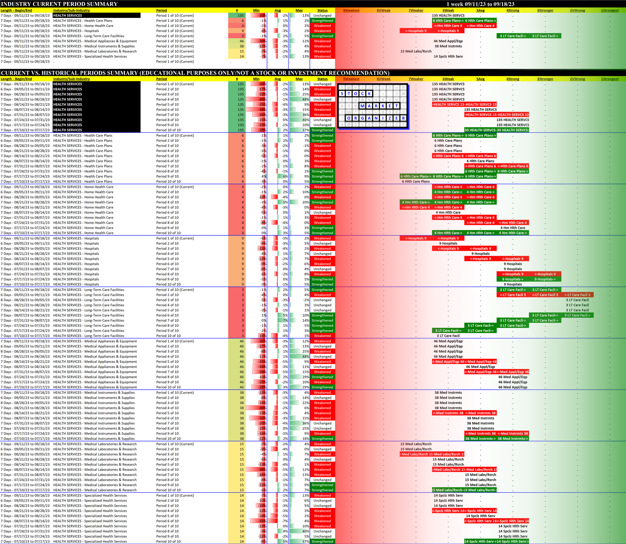 Health Services 2023-09-18: Unchanged at WEAK strength rating (6th strongest of 9 levels), previous move was DOWN