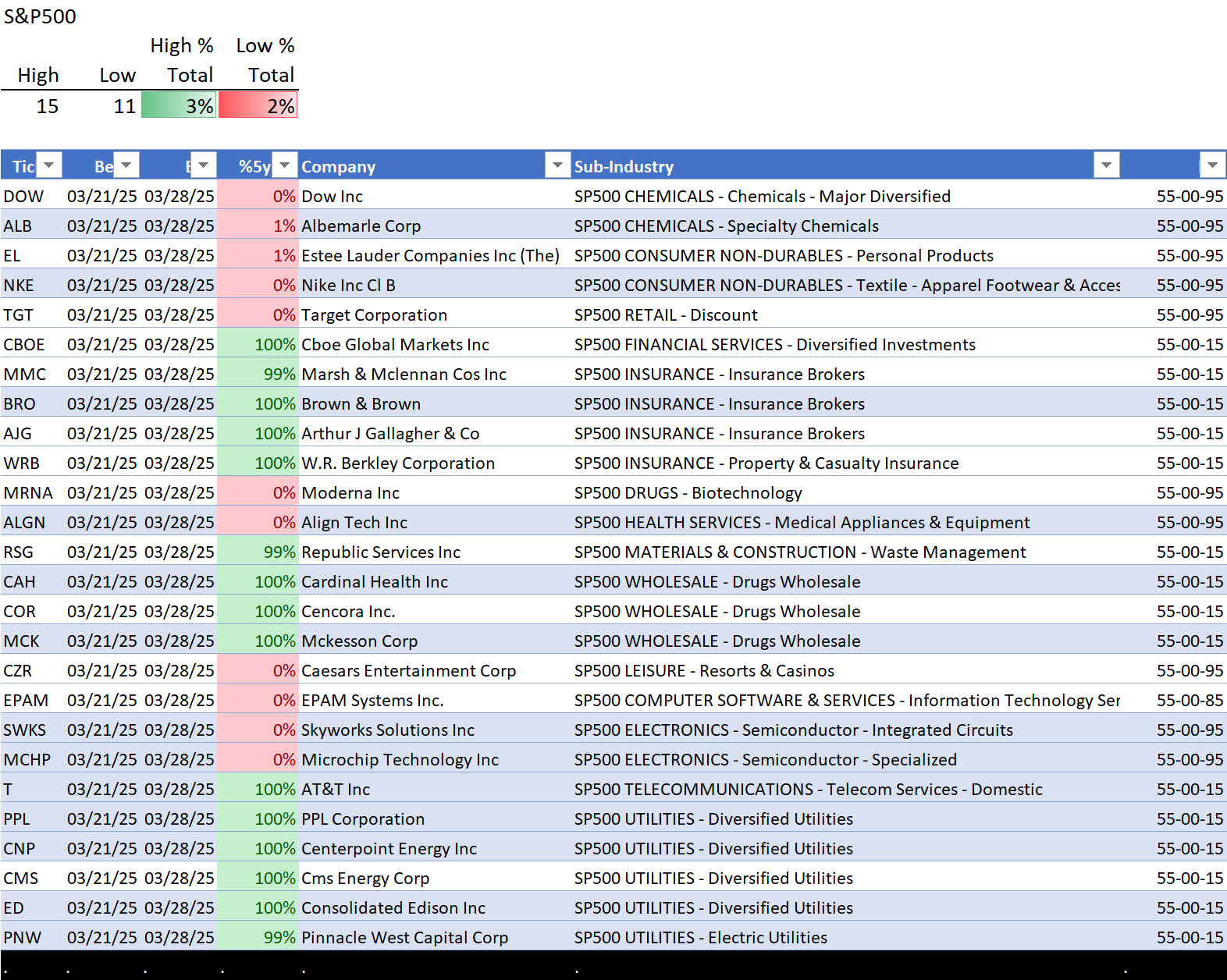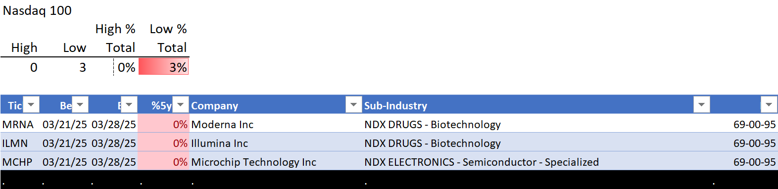 Friday, March 28, 2025 there were 15 multi-year highs and 11 multi-year lows for the S&P500. The Nasdaq 100 had a ratio of 0:3.