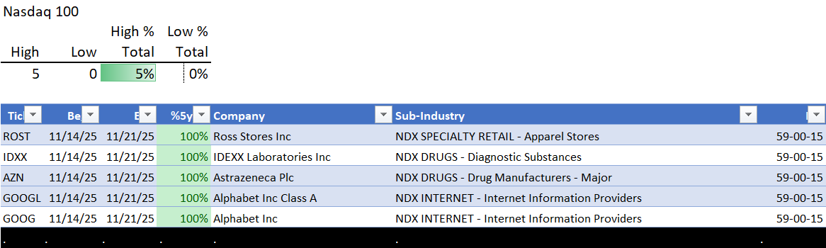 Indexes Fri 2025-11-21: SP500 5Avg (Unchanged), NDX 5Avg (Weakened/0)