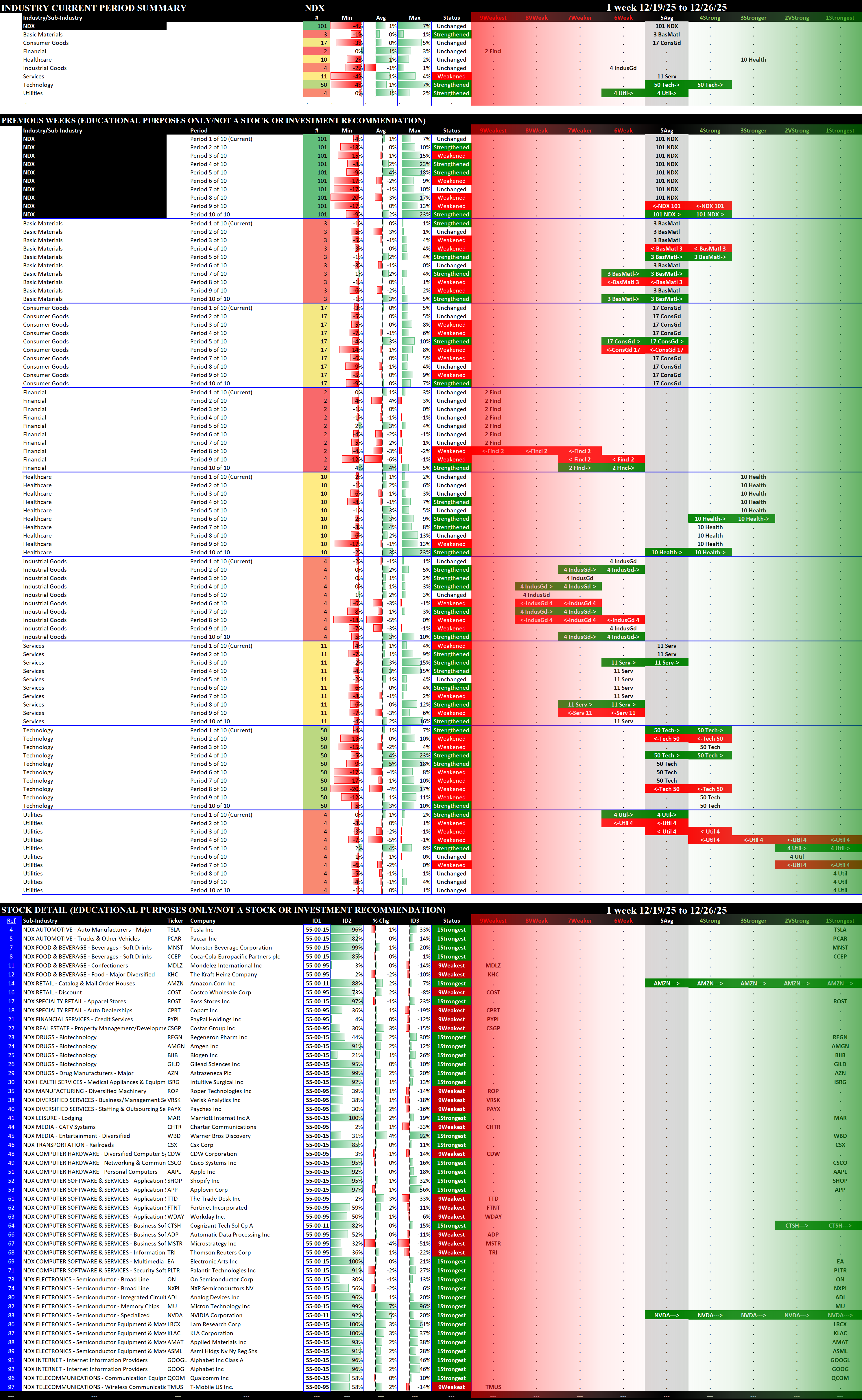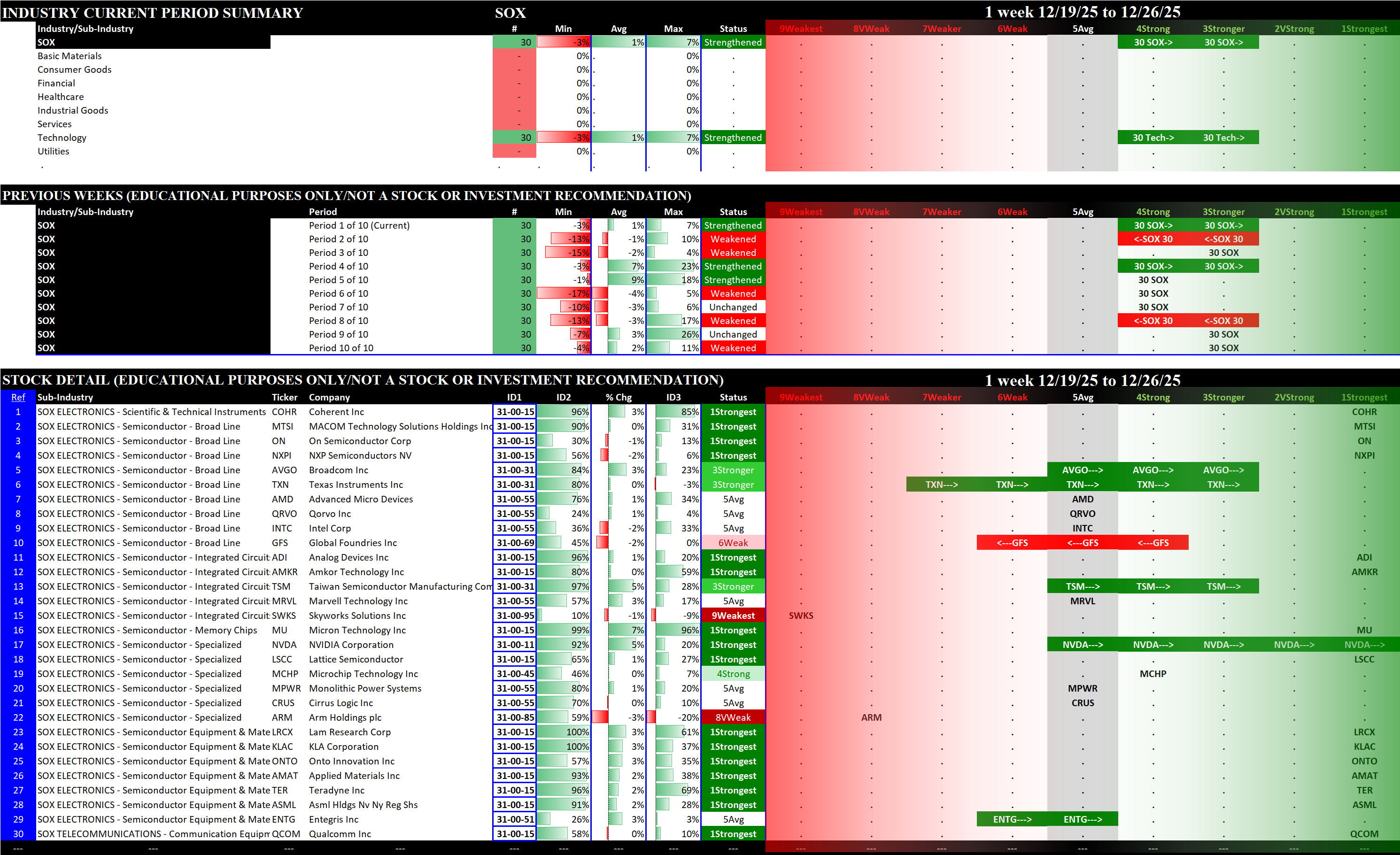 Indexes Fri 2025-12-26: Strengthened/+1 SOX, MAG7 (3Stronger), SP500 (4Strong); Unchanged NDX (5Avg)