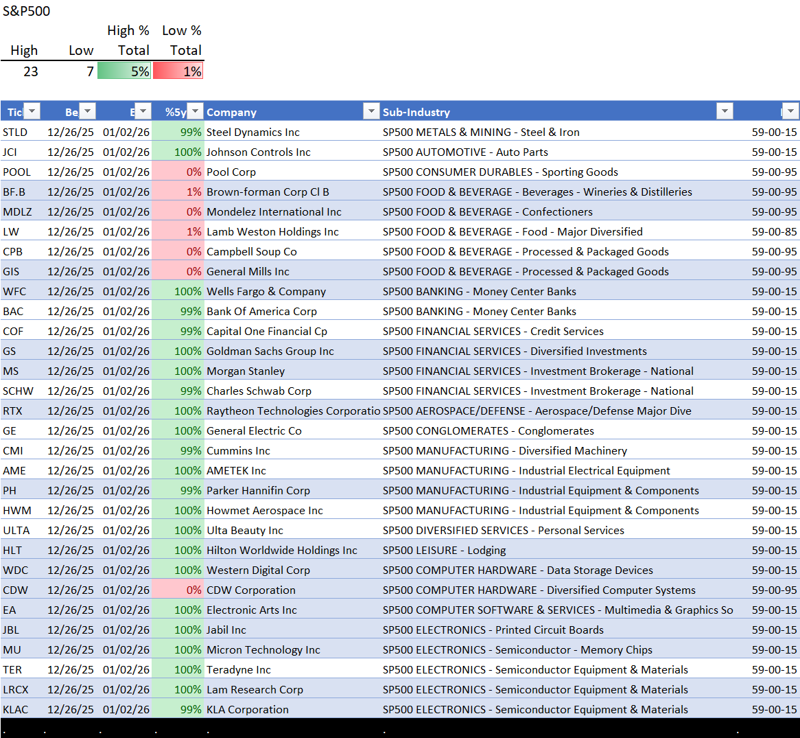Outliers - SP500, NDX 5-Year Highs/Lows