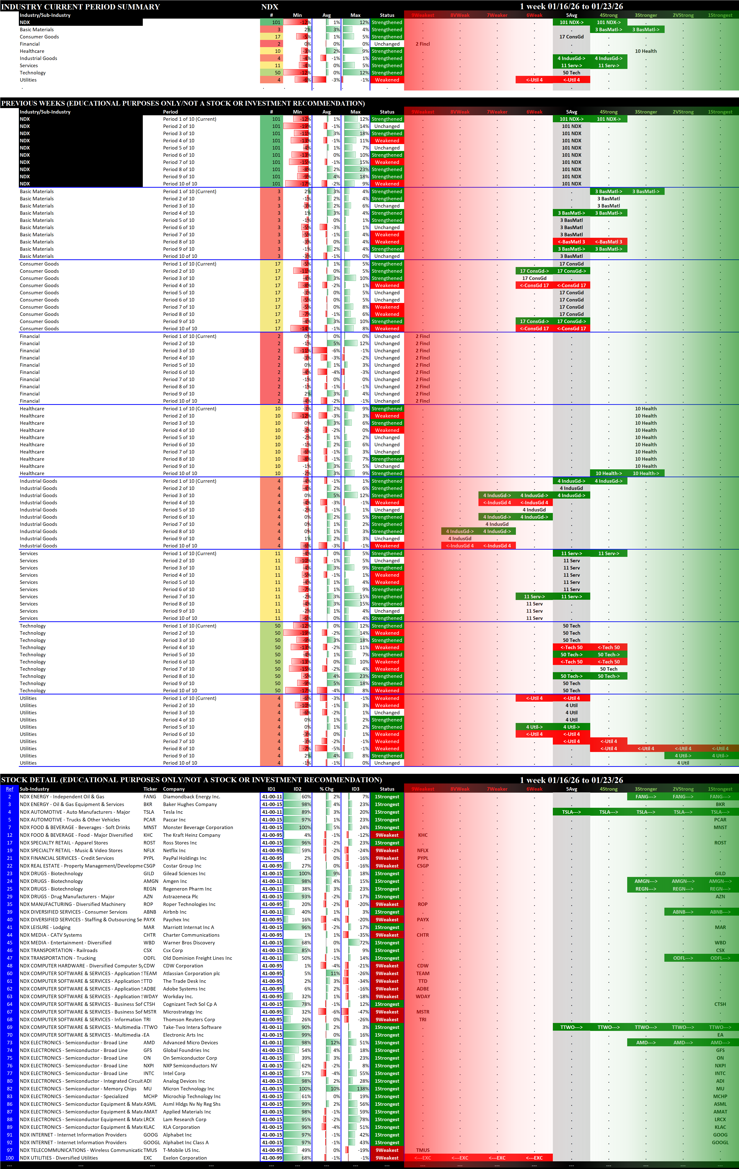 Indexes Fri 2026-01-23: STRENGTHENED/+1 NDX, MAG7 (both 4Strong ); STRENGTHENED/0 SP500 (4Strong), SOX (3Stronger)