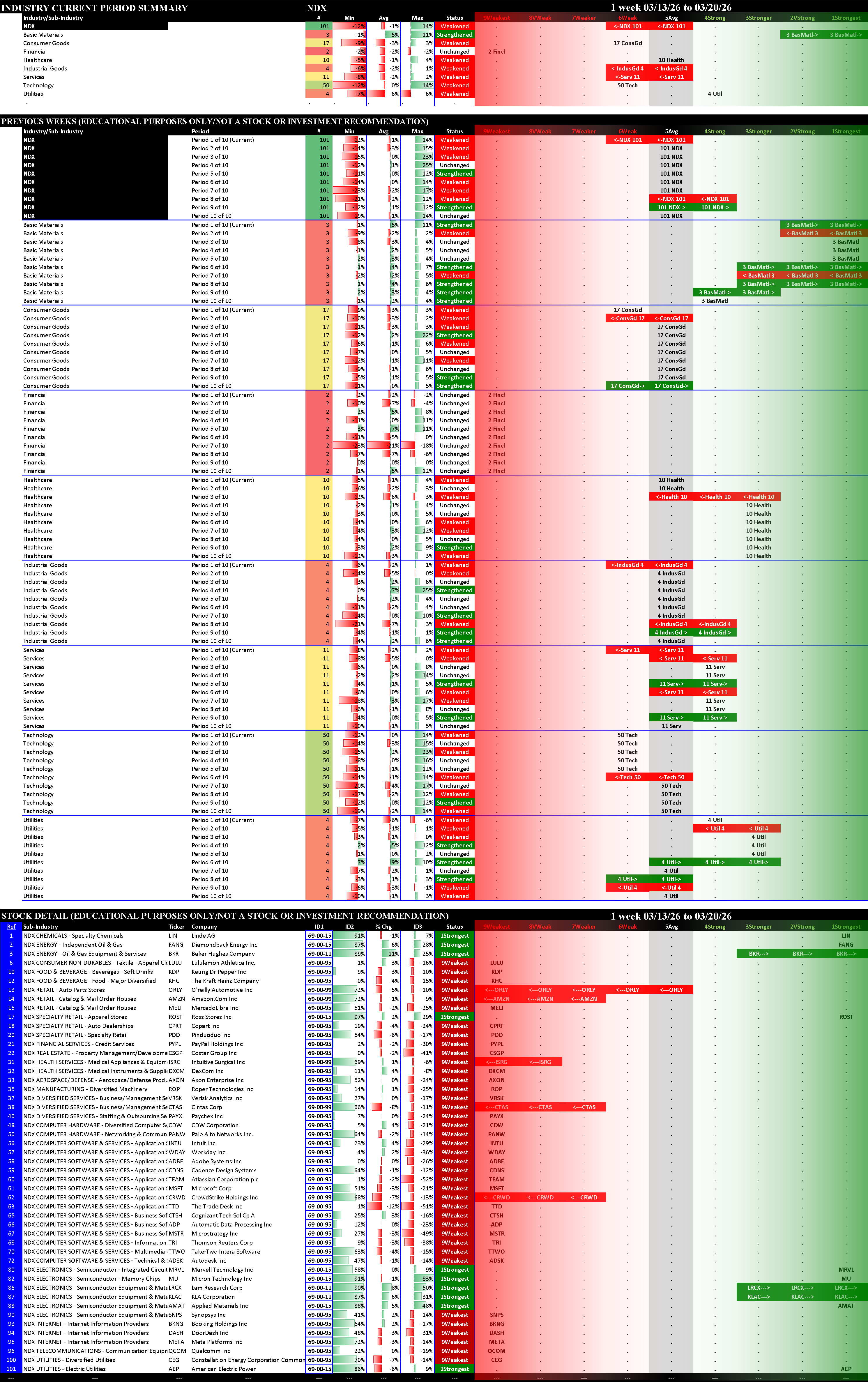 Indexes Fri 2026-03-20: Unchanged SOX (4Strong); Weakened/-1 SP500 (6Weak), NDX (6Weak), MAG7 (7Weaker)