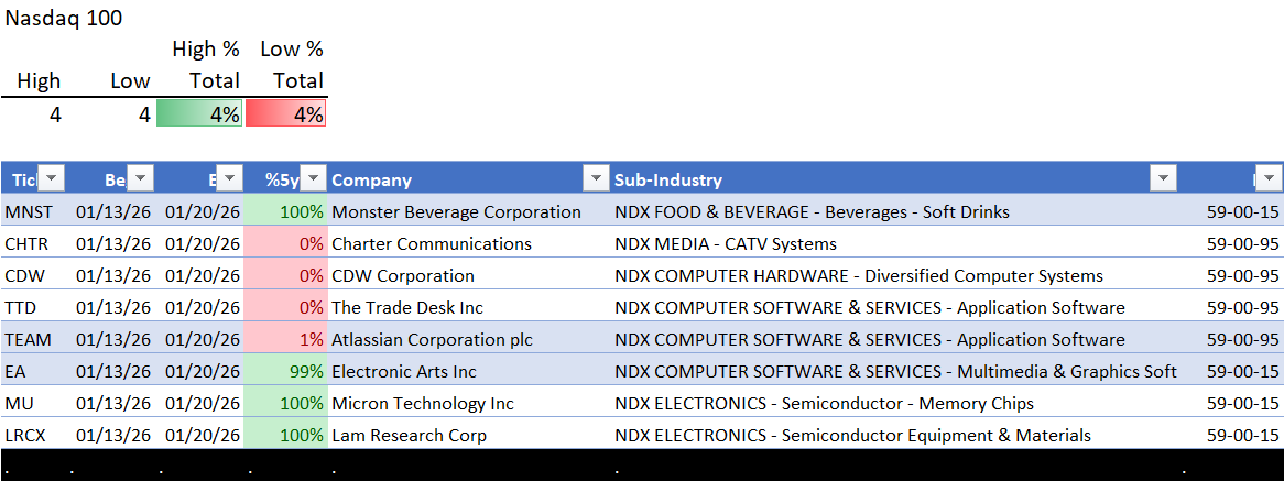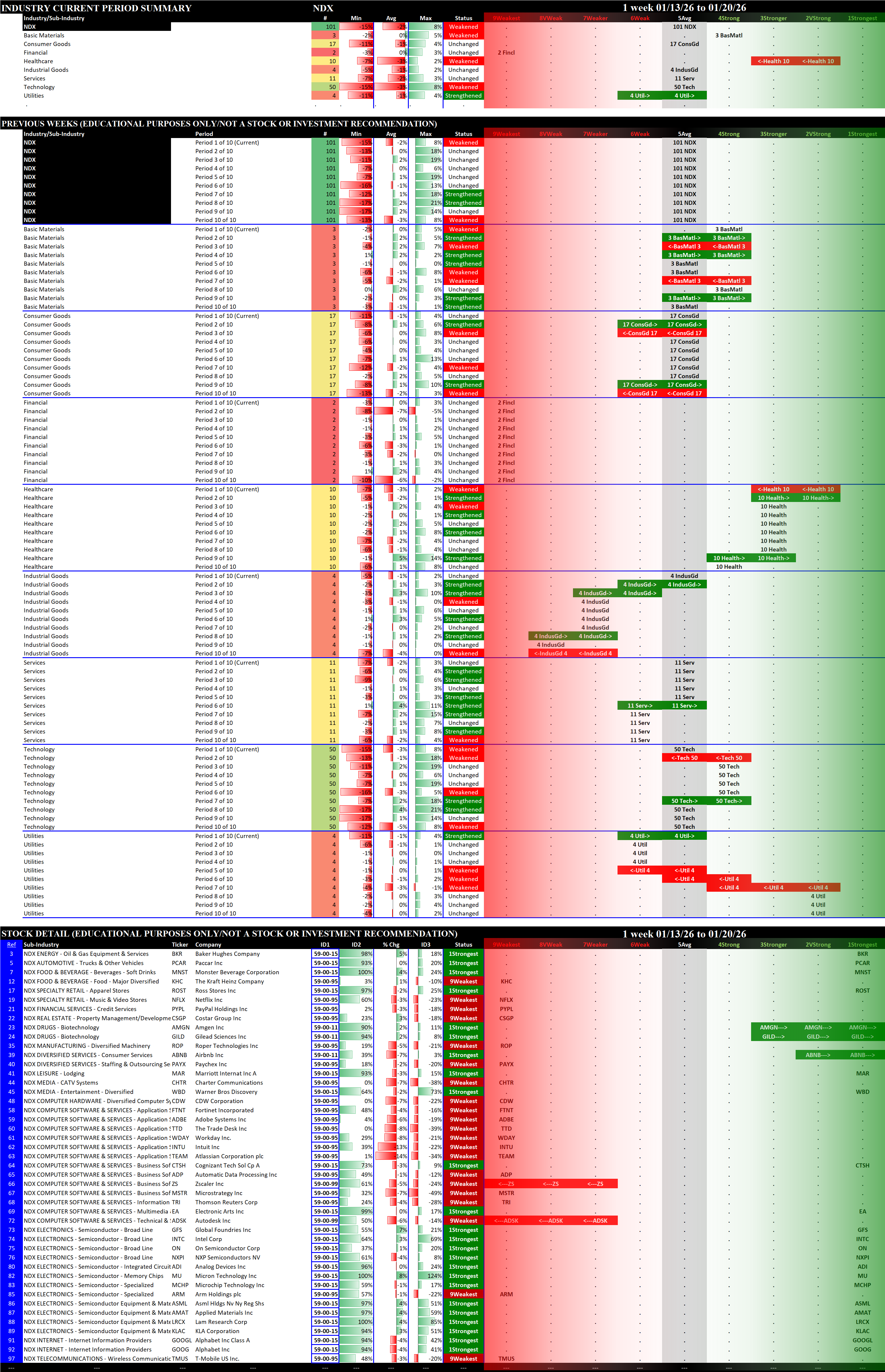 Indexes Tue 2026-01-20: Unchanged SOX (3Stronger); Weakened/0 SP500 (4Strong), NDX (5Average); Weakened/-1 MAG7 (5Average)
