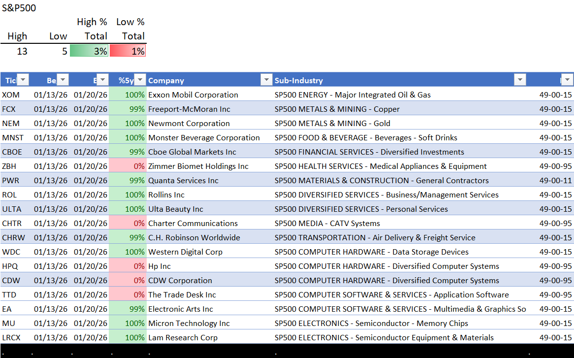 Outliers - SP500, NDX 5-Year Highs/Lows
