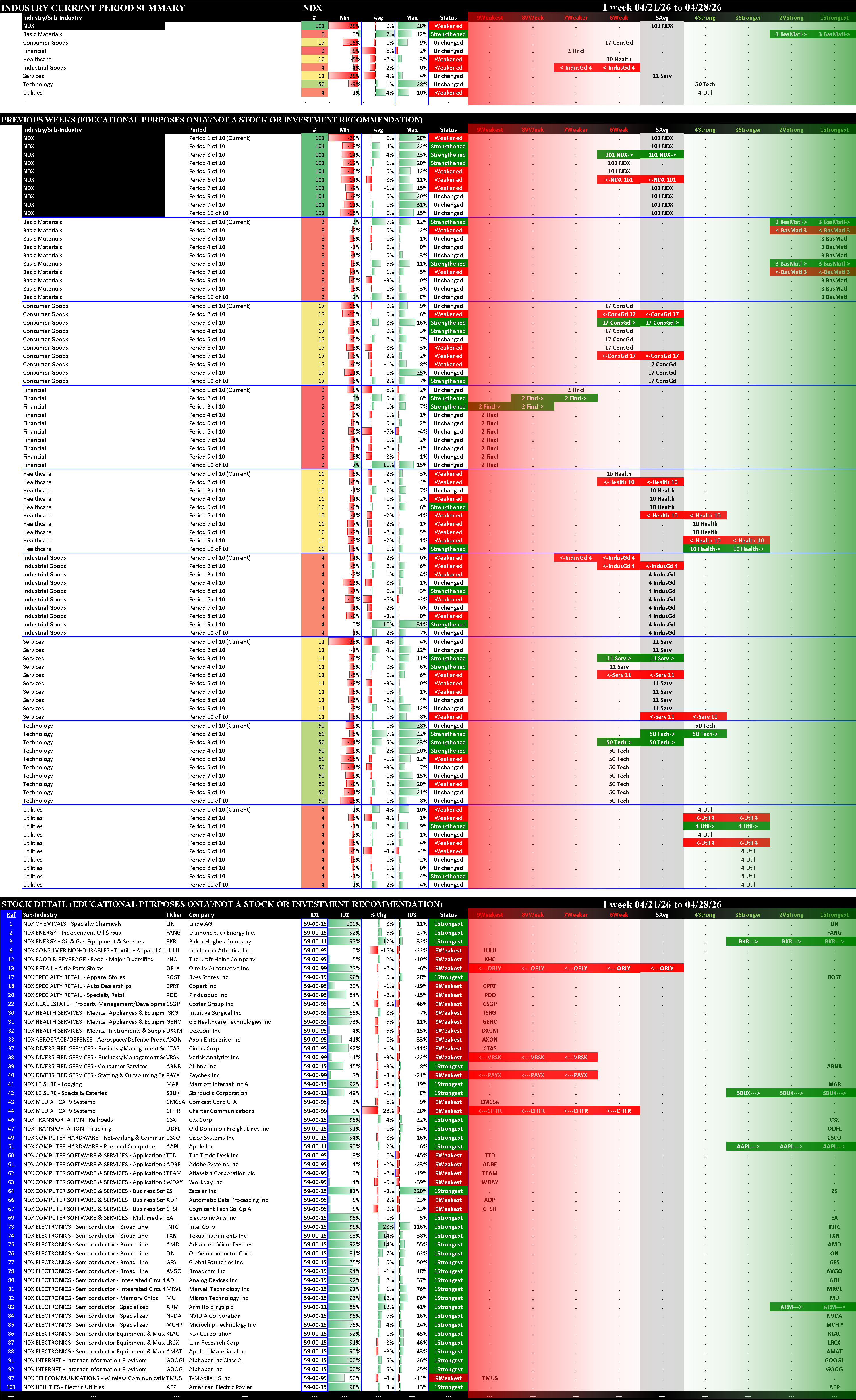 Indexes Tue 2026-04-28: Strengthened/0 Mag7 (4Strong); Unchanged SOX (3Stronger); Weakened/0 SP500 (5Avg), NDX (5Avg)