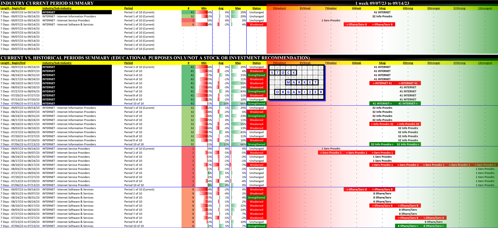 10-Week Week-by-Week Industry/Sub-industry Strength Comparison
