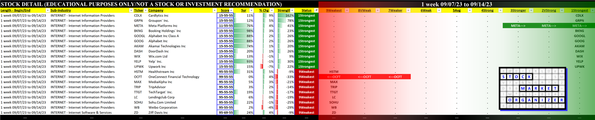 What: stocks currently rated Strongest/Weakest (highest/lowest of 9 strength ratings)