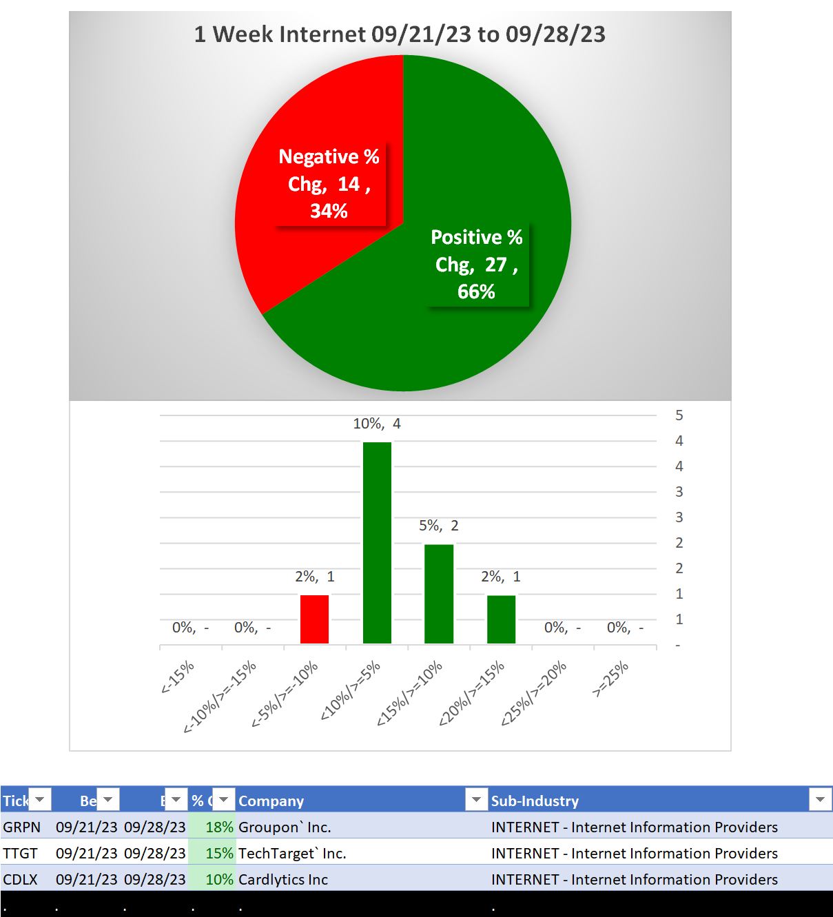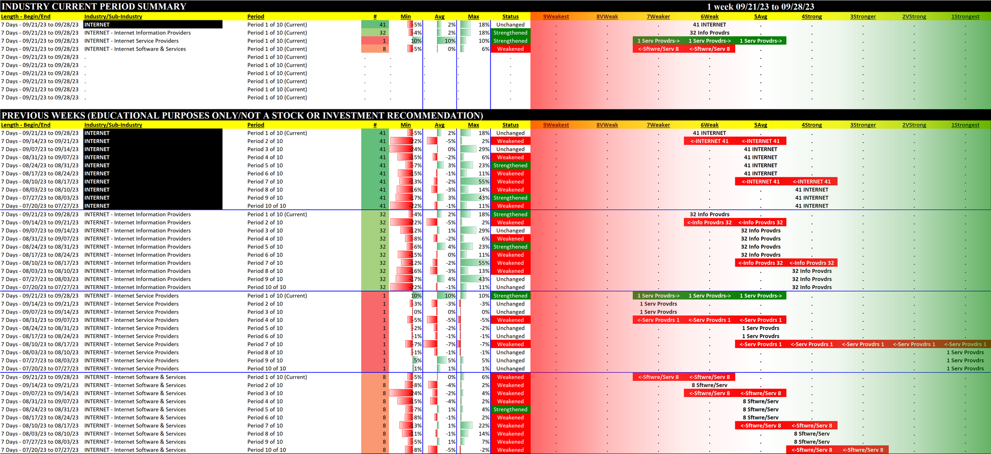 What: recent week-by-week strength changes for the industry and each underlying sub-industry